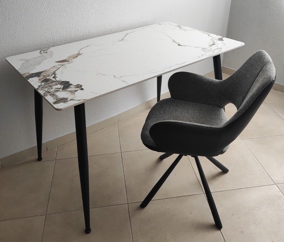 Прямоугольная столешница из агломерата устойчива к царапинам, горячим предметам и бытовым загрязнениям. Металлический каркас с чёткими геометричными линиями придаёт столу лёгкую визуальную воздушность, сохраняя при этом исключительную прочность. Оптимальная высота 76 см обеспечивает комфорт во время семейных обедов или дружеских встреч, а лаконичная форма идеально впишется в интерьеры от лофта до скандинавского стиля.