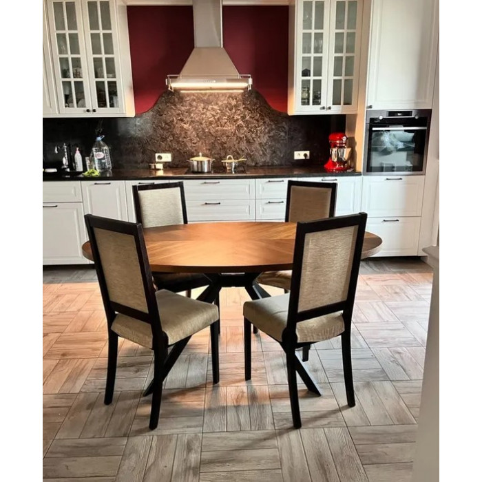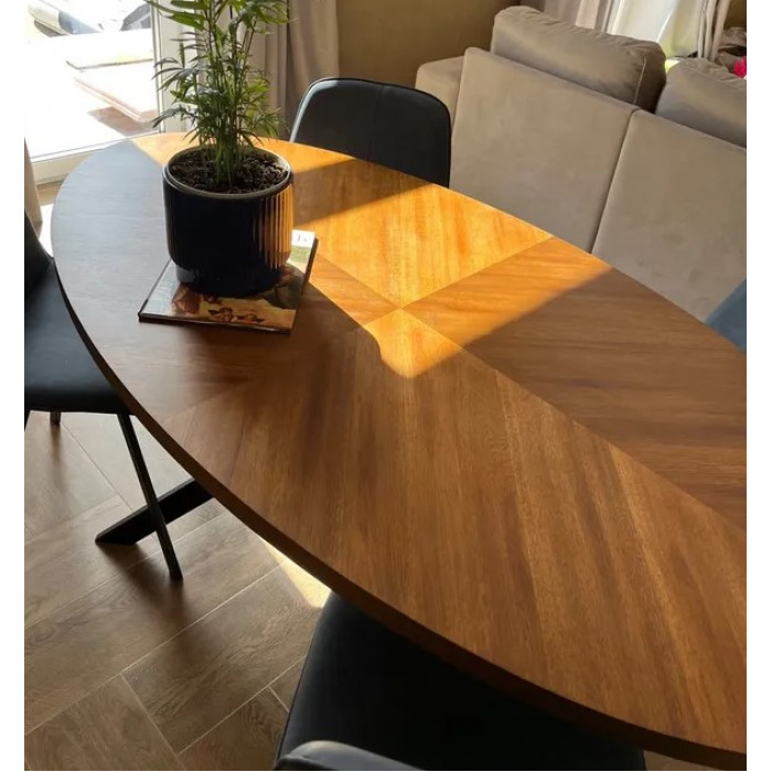 Овальная столешница из высококачественного МДФ размером 170х90 см обеспечивает достаточно пространства для размещения шести человек, делая каждую трапезу по-настоящему уютной. Прочное металлическое подстолье не только придает столу современный вид, но и гарантирует исключительную устойчивость и долговечность. Благодаря классической высоте 75 см, стол обеспечивает комфорт во время обедов или вечерних посиделок с семьей и друзьями.