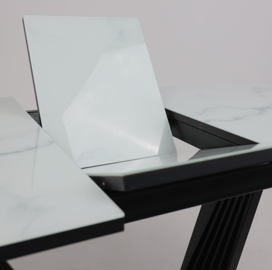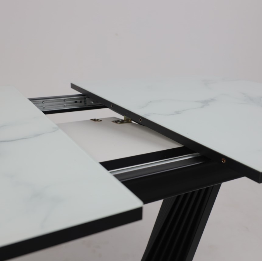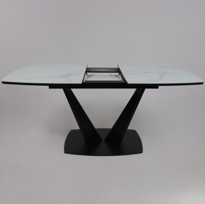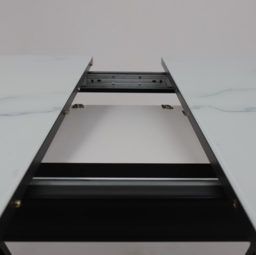 Раздвижной механизм стола обеспечивает быстрое и удобное изменение размера столешницы, что делает этот обеденный стол практичным и функциональным решением для дома.