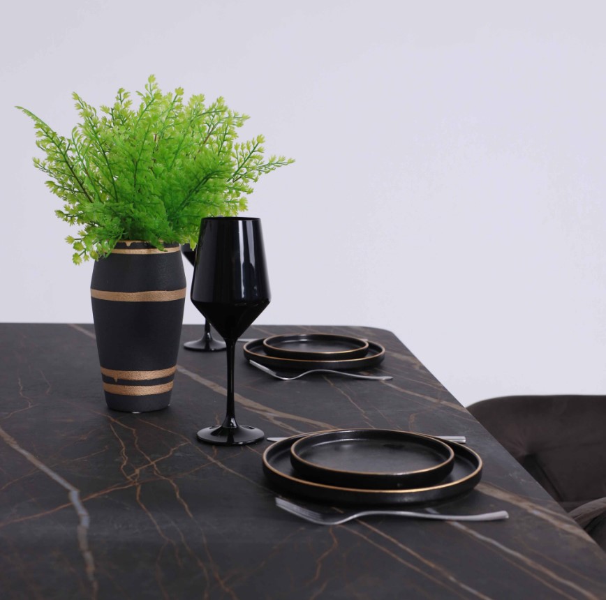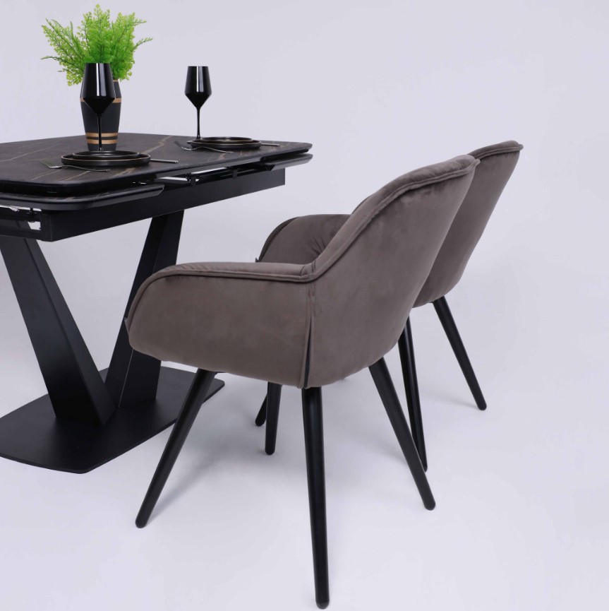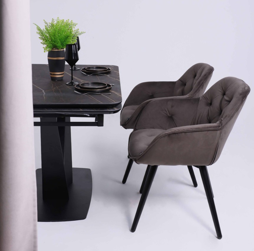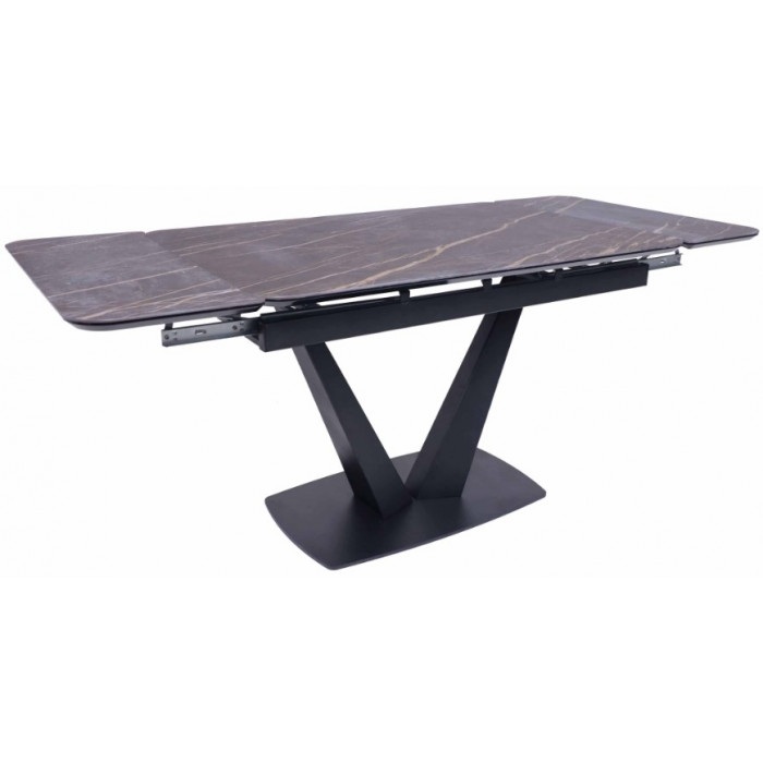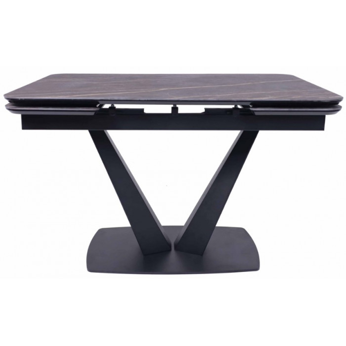 Столешница стола изготовлена из высококачественной керамики, которая отличается прочностью, износостойкостью и легкостью в уходе. Основание стола выполнено из металла, что обеспечивает его устойчивость и долговечность.