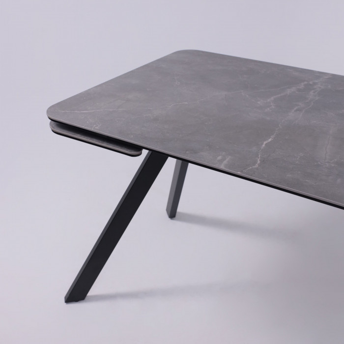 ЛЕОН - это стильный и функциональный обеденный раздвижной стол, идеально подходящий для современных интерьеров. Его столешница из высококачественной керамики обладает гладкой поверхностью и устойчивостью к царапинам, а также легко очищается от загрязнений. Основание стола из надежного металла обеспечивает ему прочность и устойчивость.