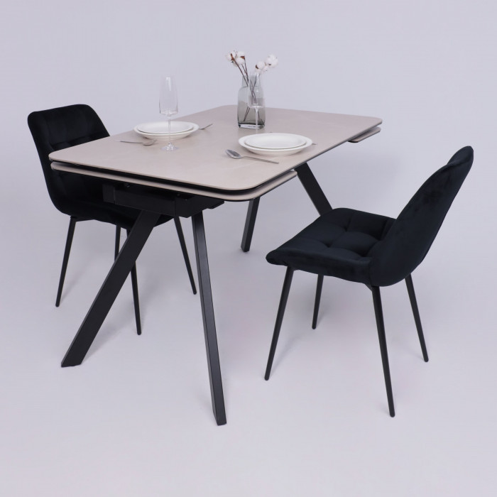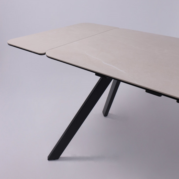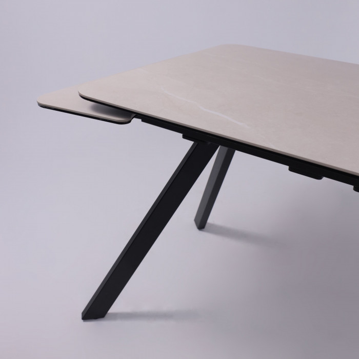 ЛЕОН - это стильный и функциональный обеденный раздвижной стол, идеально подходящий для современных интерьеров. Его столешница из высококачественной керамики обладает гладкой поверхностью и устойчивостью к царапинам, а также легко очищается от загрязнений. Основание стола из надежного металла обеспечивает ему прочность и устойчивость.