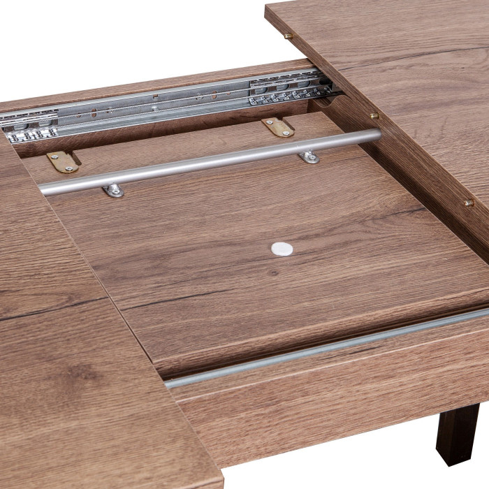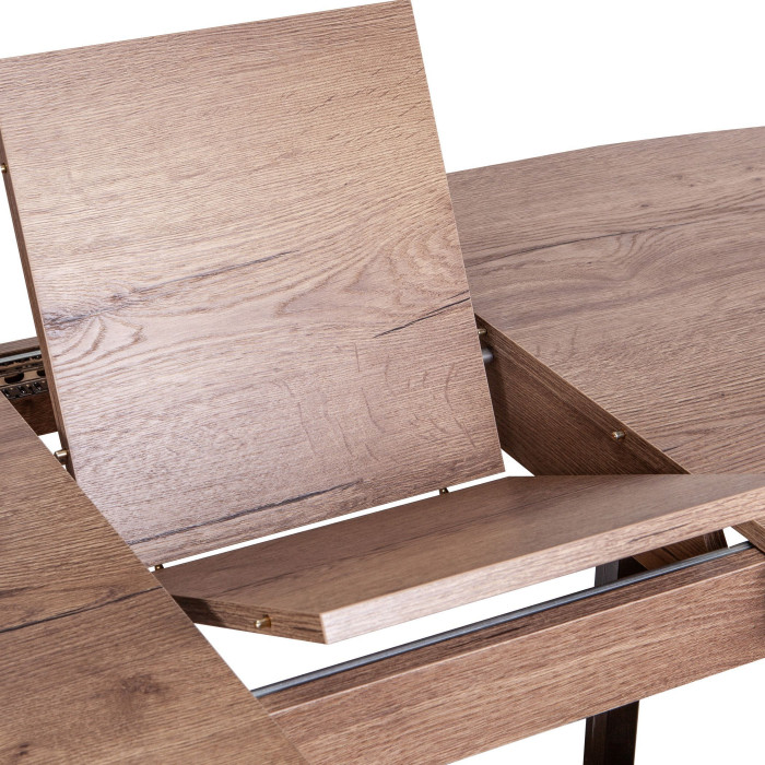 Основание стола из надежного металла обеспечивает ему устойчивость и прочность, сохраняя при этом легкость и изящество. Механизм трансформации позволяет легко и быстро увеличить или уменьшить размер столешницы в зависимости от количества гостей, что делает стол ЛИОН идеальным вариантом для различных мероприятий и семейных праздников.