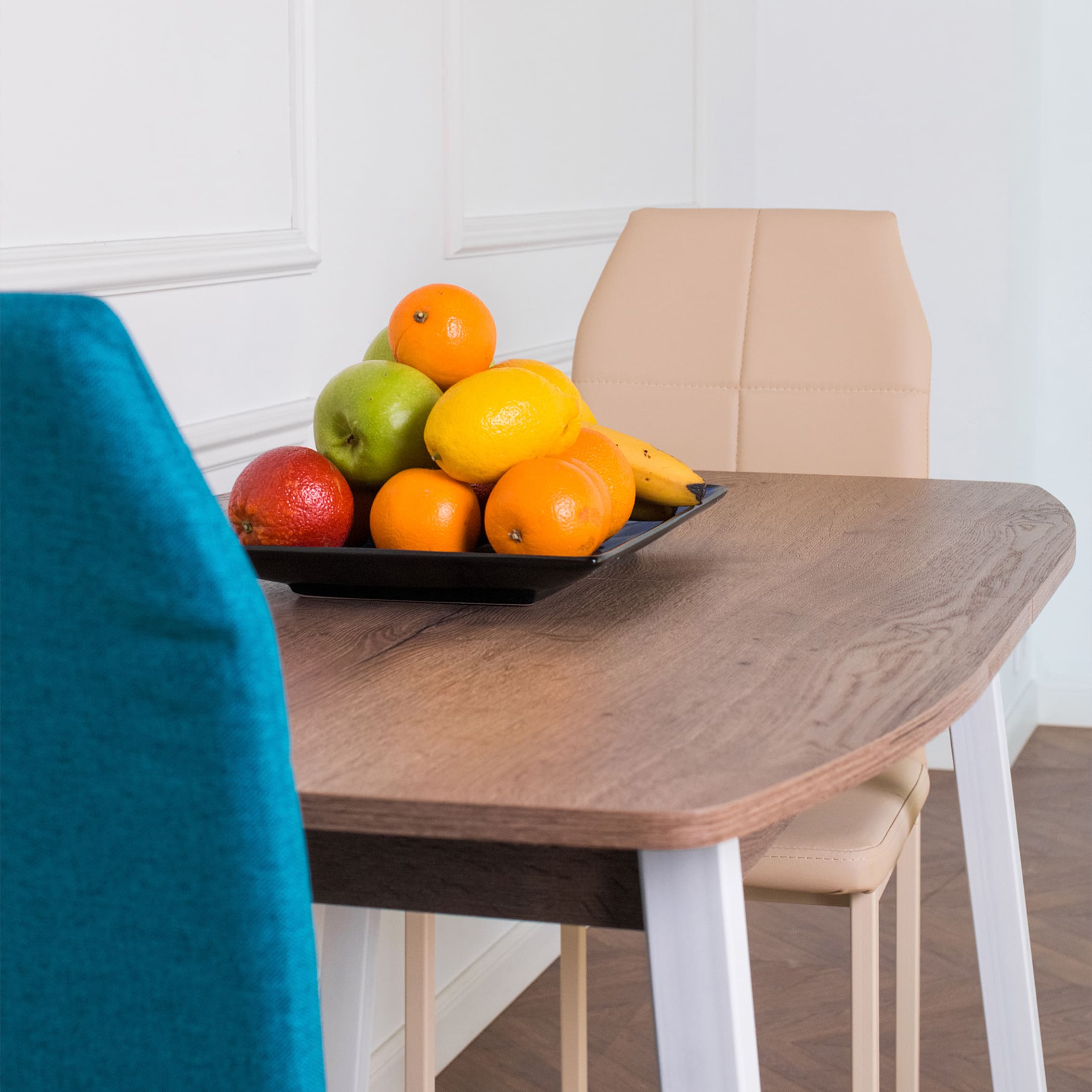 Столешница из высококачественного ЛДСП отличается прочностью и долговечностью, а также легко поддается уборке и уходу. Ее прямоугольная форма с уменьшением ширины по бокам придает столу особую элегантность и позволяет оптимально использовать пространство Вашей столовой.