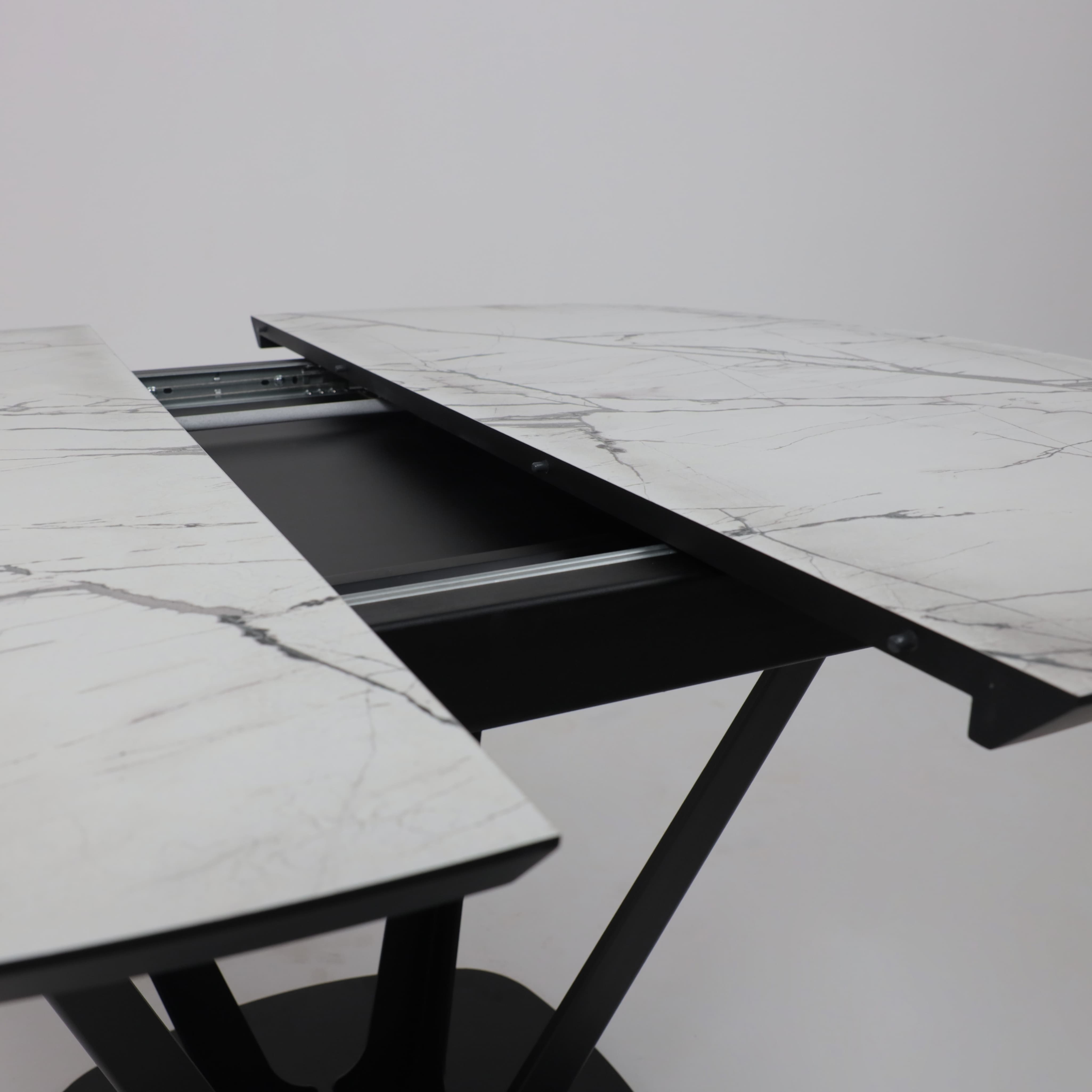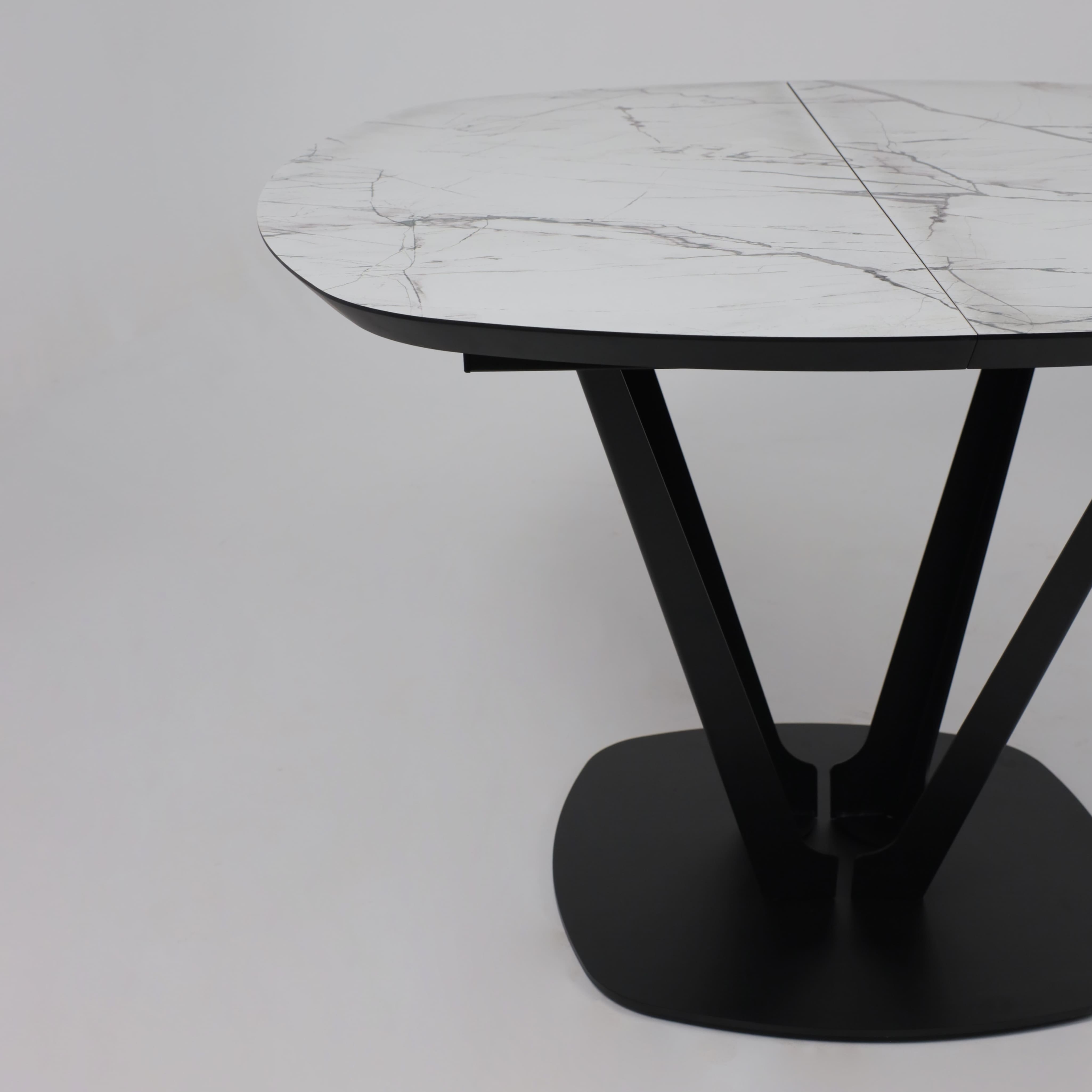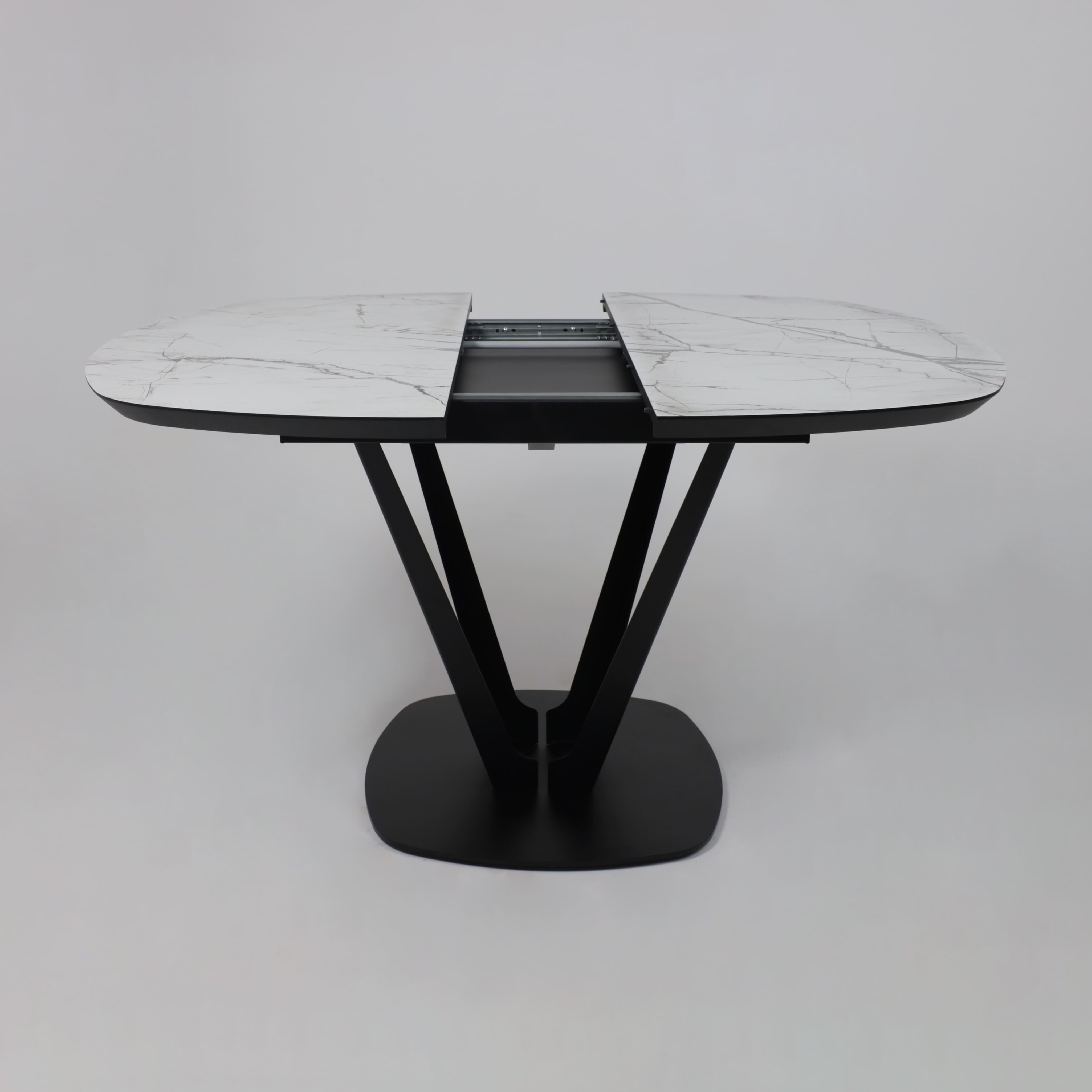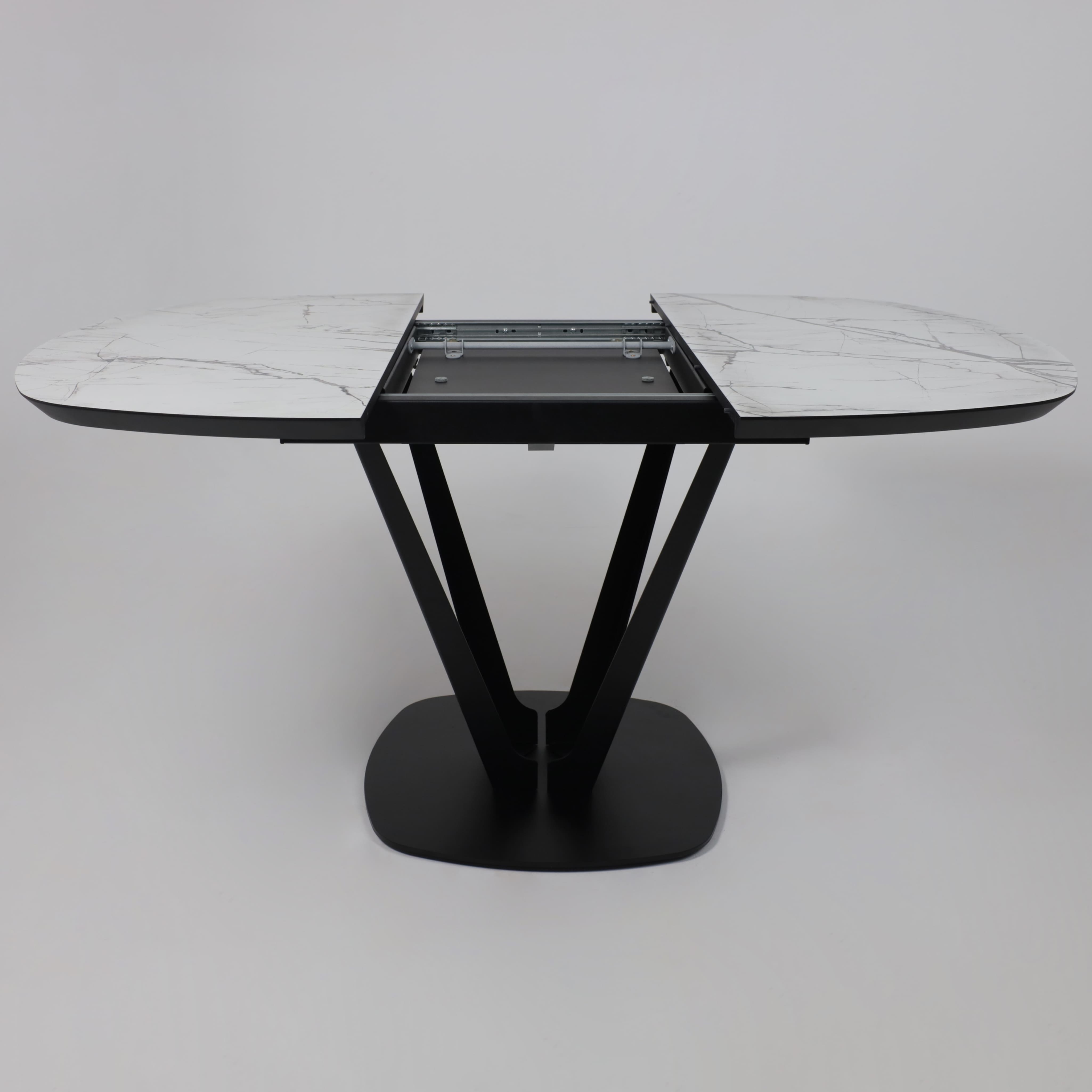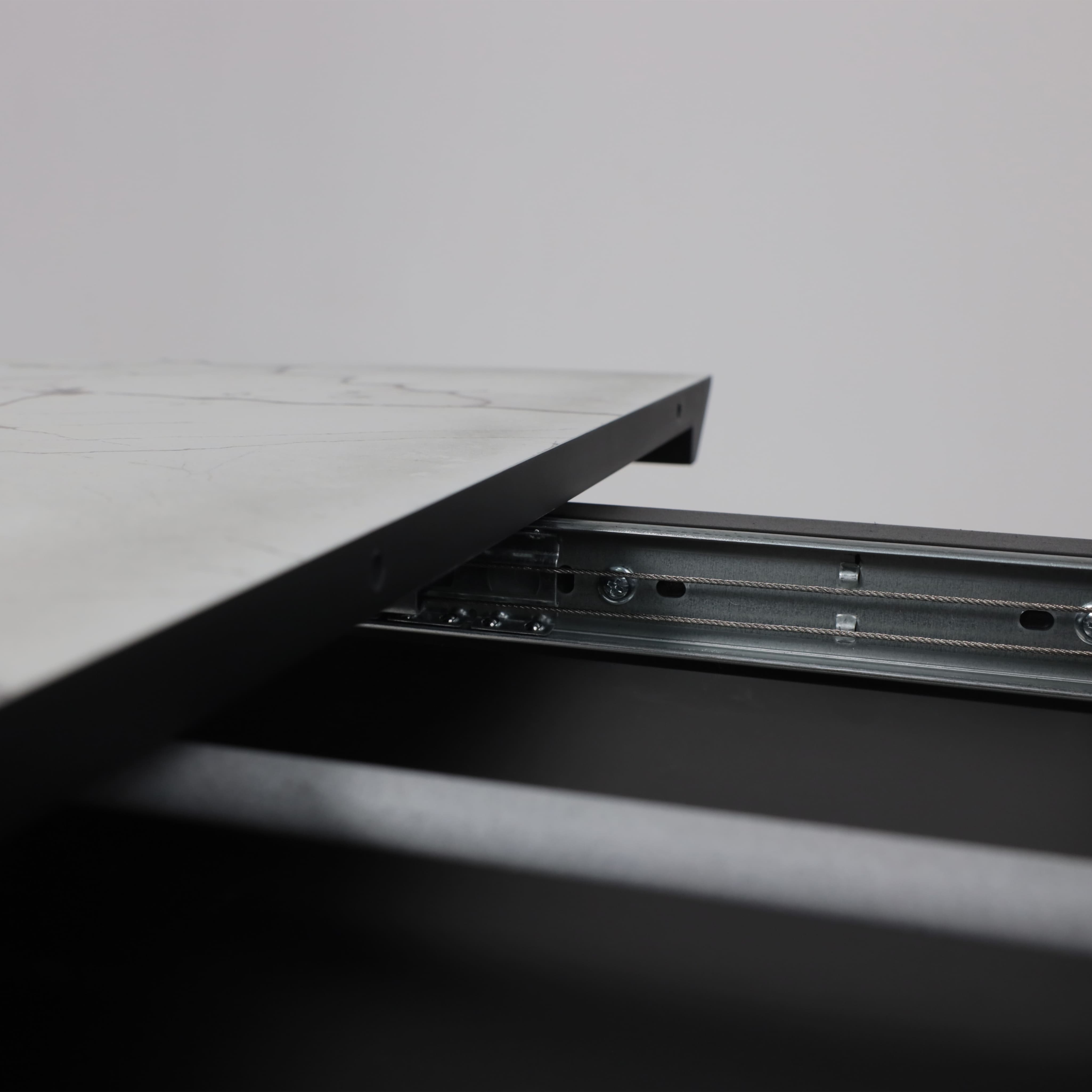 Основание стола из надежного металла обеспечивает устойчивость и прочность. Механизм трансформации позволяет легко и быстро увеличить или уменьшить размер столешницы в зависимости от количества гостей, что делает стол MERLIN идеальным вариантом для различных мероприятий и семейных праздников.