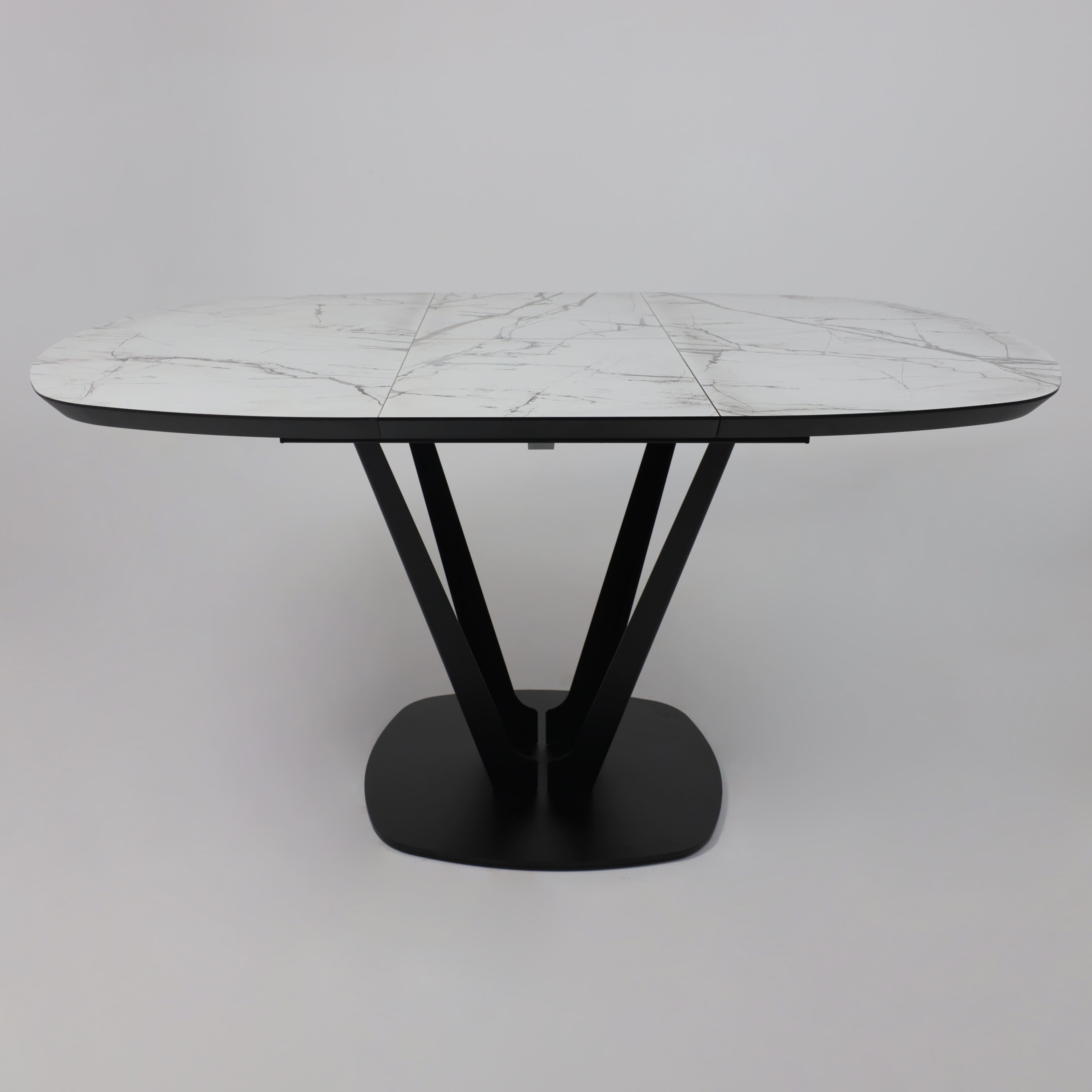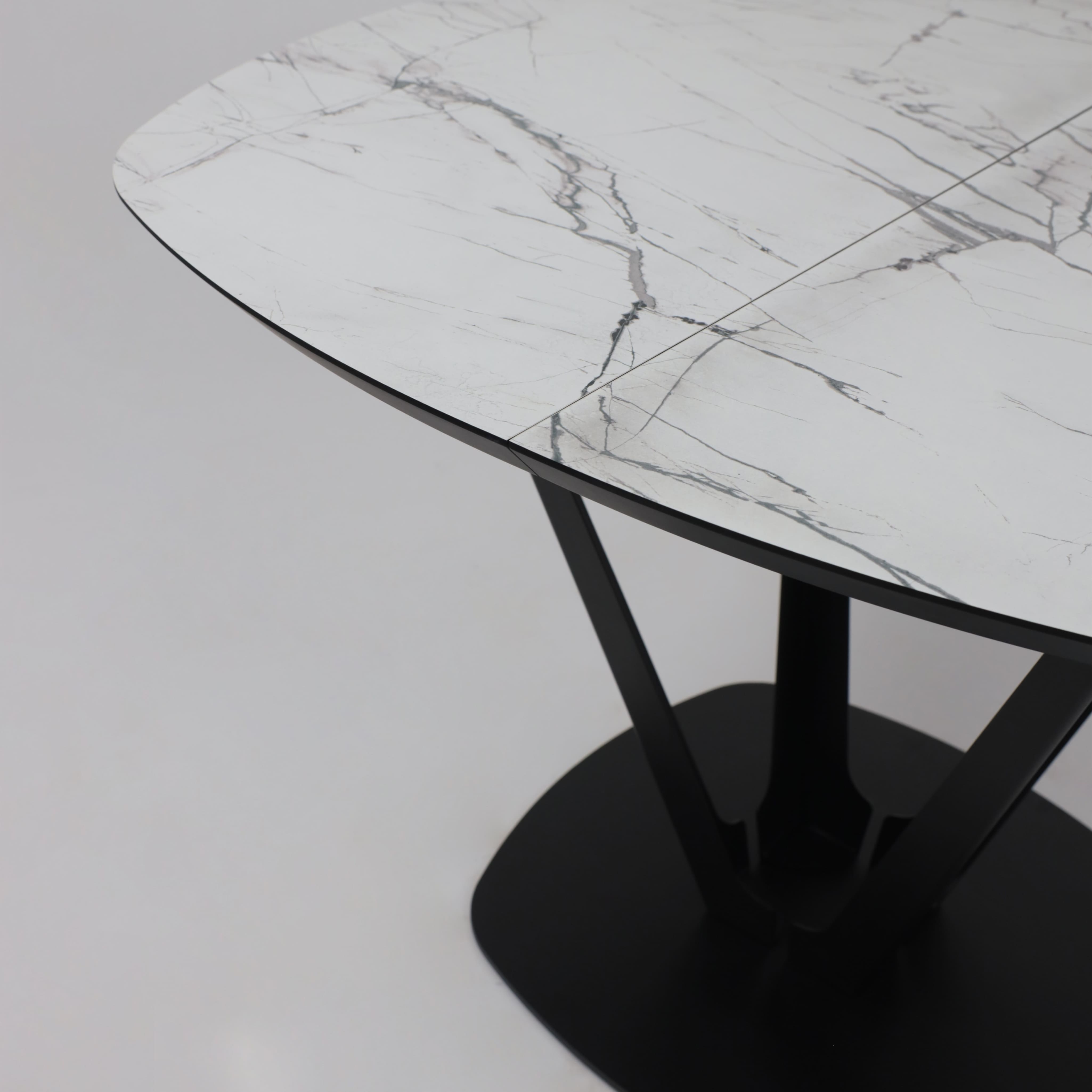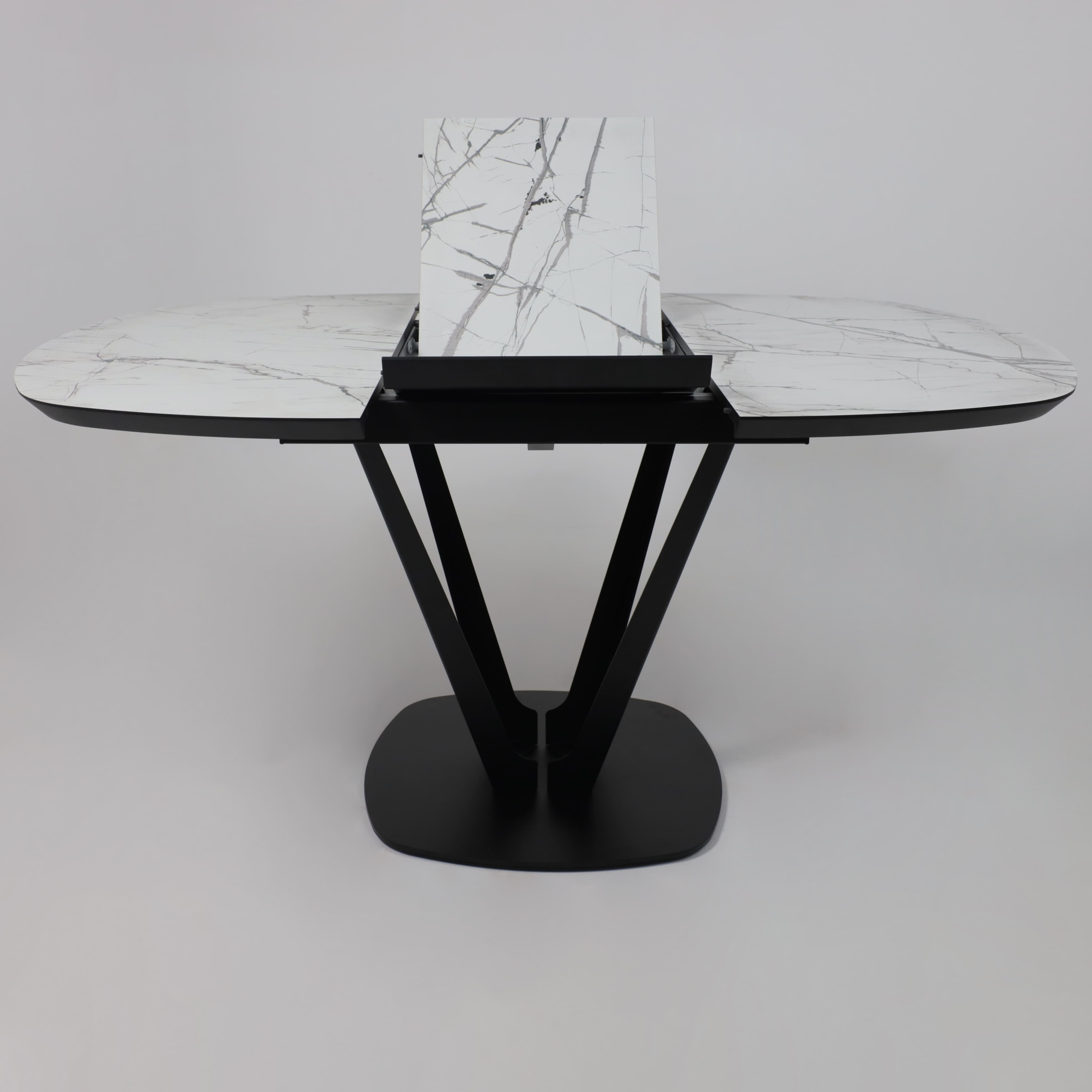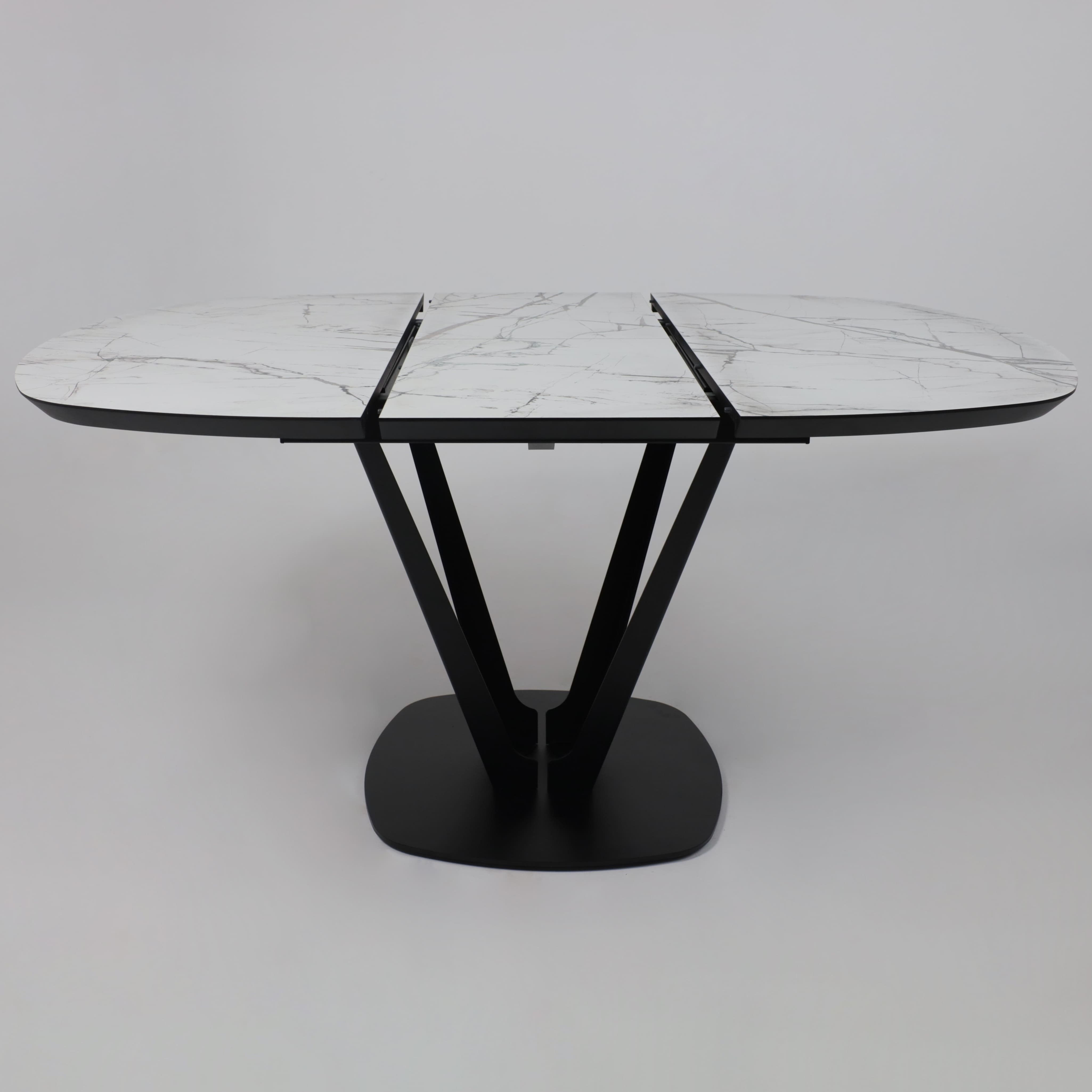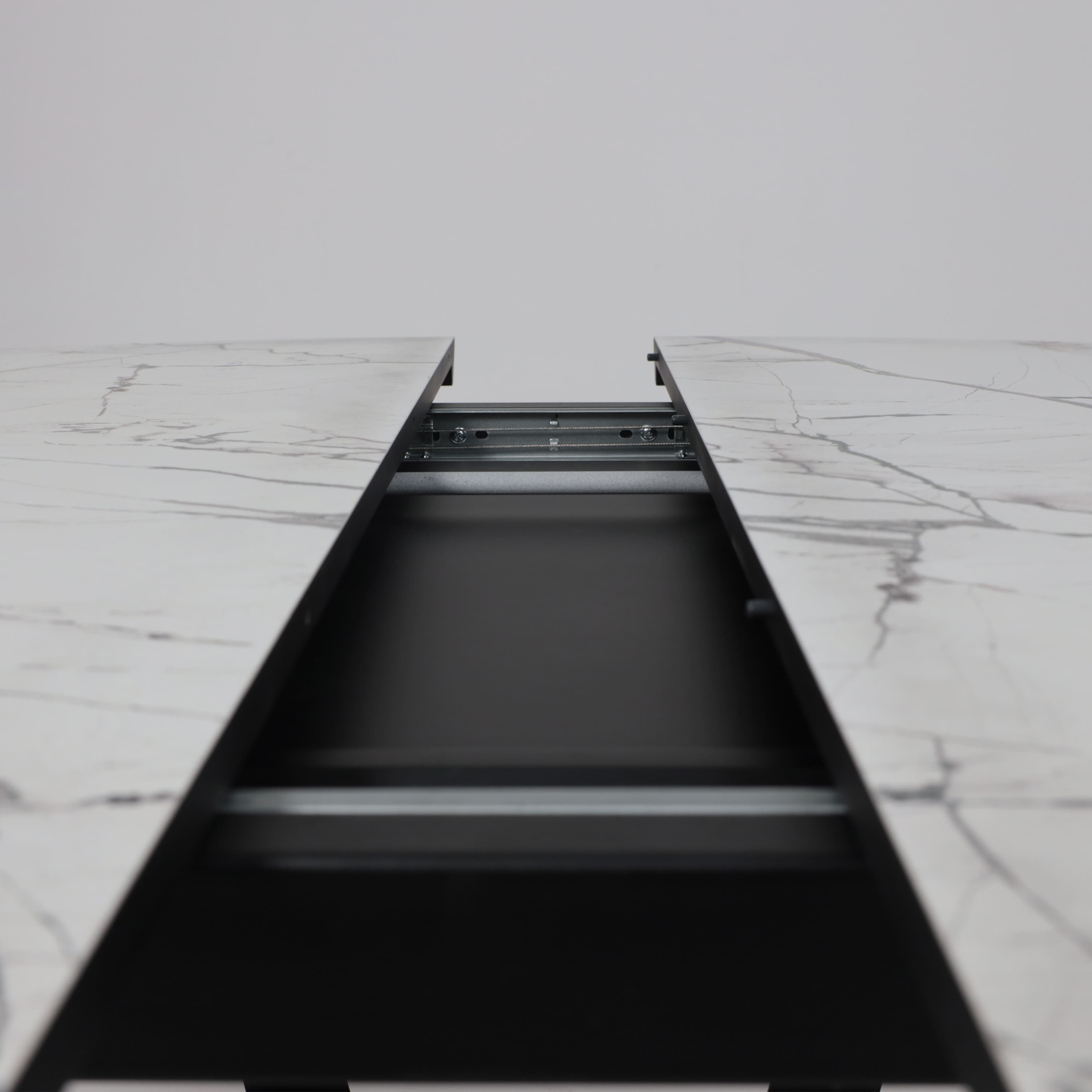 Основание стола из надежного металла обеспечивает устойчивость и прочность. Механизм трансформации позволяет легко и быстро увеличить или уменьшить размер столешницы в зависимости от количества гостей, что делает стол MERLIN идеальным вариантом для различных мероприятий и семейных праздников.