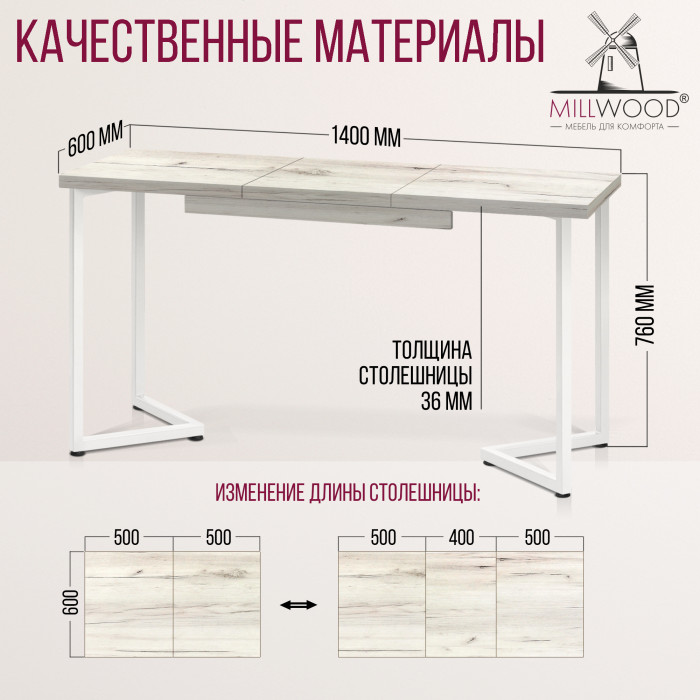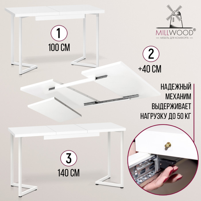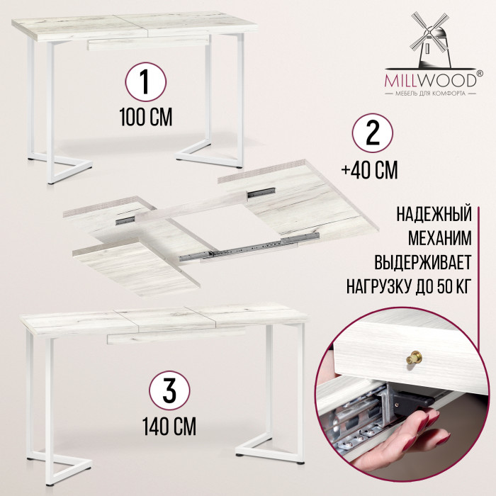 - Стол Millwood Лондон (100-140)*60 раздвижной (каркас белый) купить в Минске