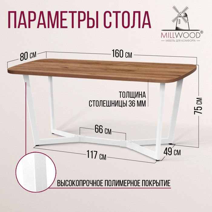 - Стол Millwood Мюнхен 160*80 (каркас белый) купить в Минске