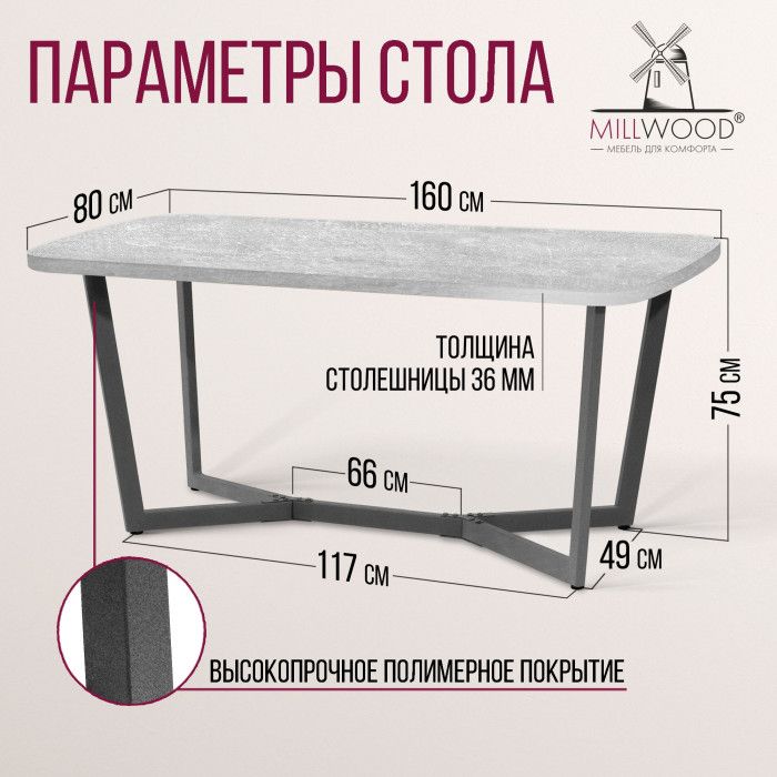 - Стол Millwood Мюнхен 160*80 (каркас графит) купить в Минске
