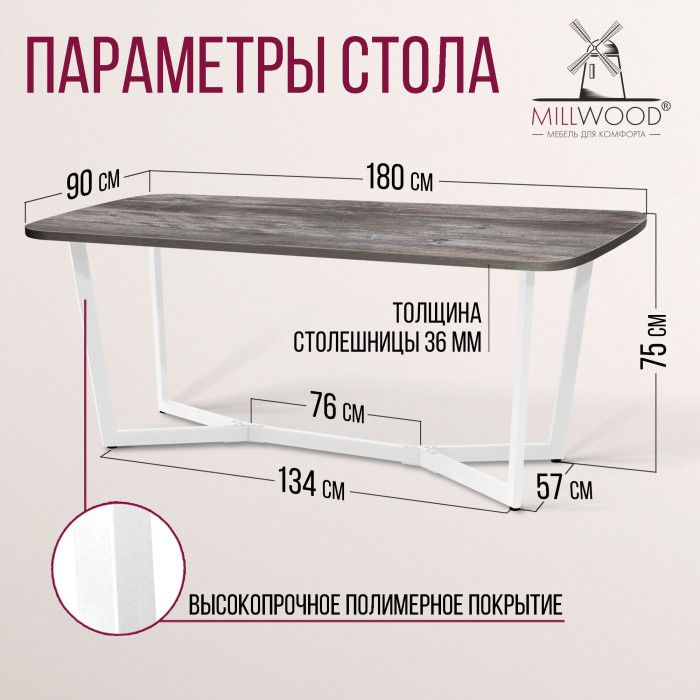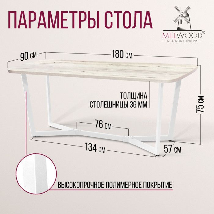 - Стол Millwood Мюнхен 180*90 (каркас белый) купить в Минске