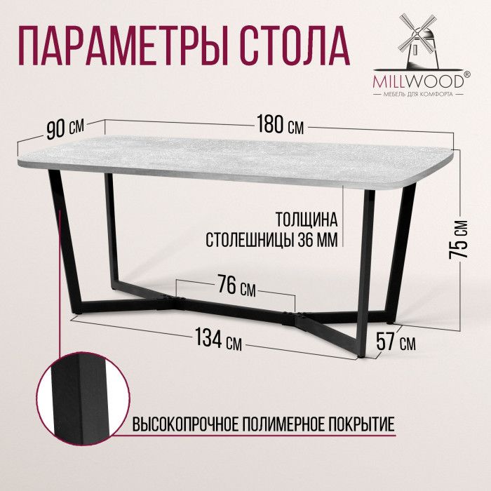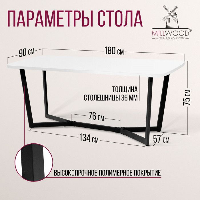 - Стол Millwood Мюнхен 180*90 (каркас черный) купить в Минске