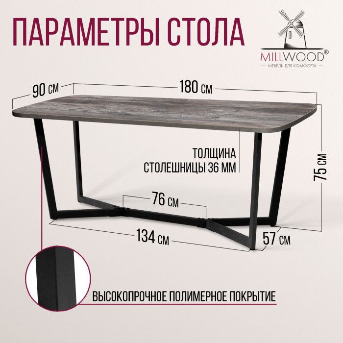 Стол Millwood Мюнхен 180*90 (каркас черный) купить в Минске