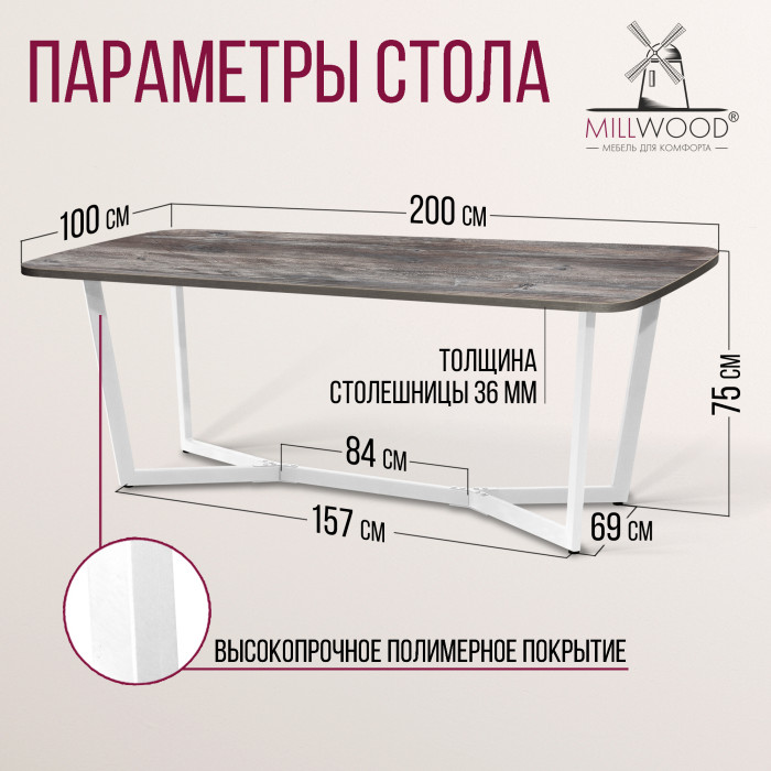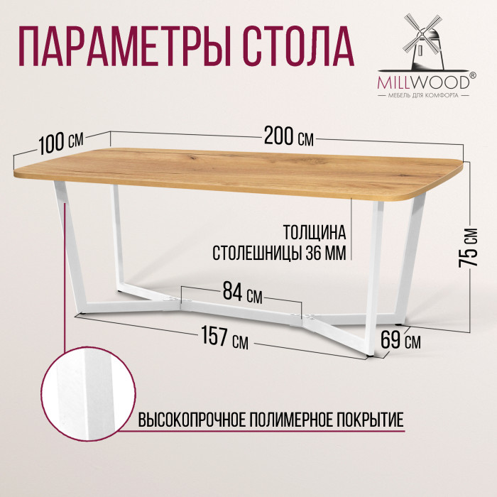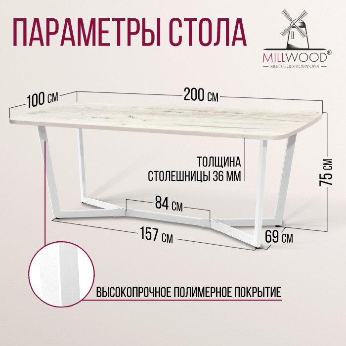 - Стол Millwood Мюнхен 200*100 (каркас белый) купить в Минске