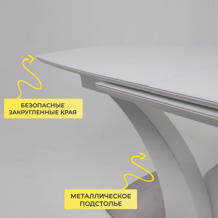 Столешница выполнена из высококачественной керамики, обладающей повышенной прочностью и устойчивостью к царапинам, сколам и воздействию влаги. Основание стола изготовлено из металла, что обеспечивает надежность и долговечность конструкции.