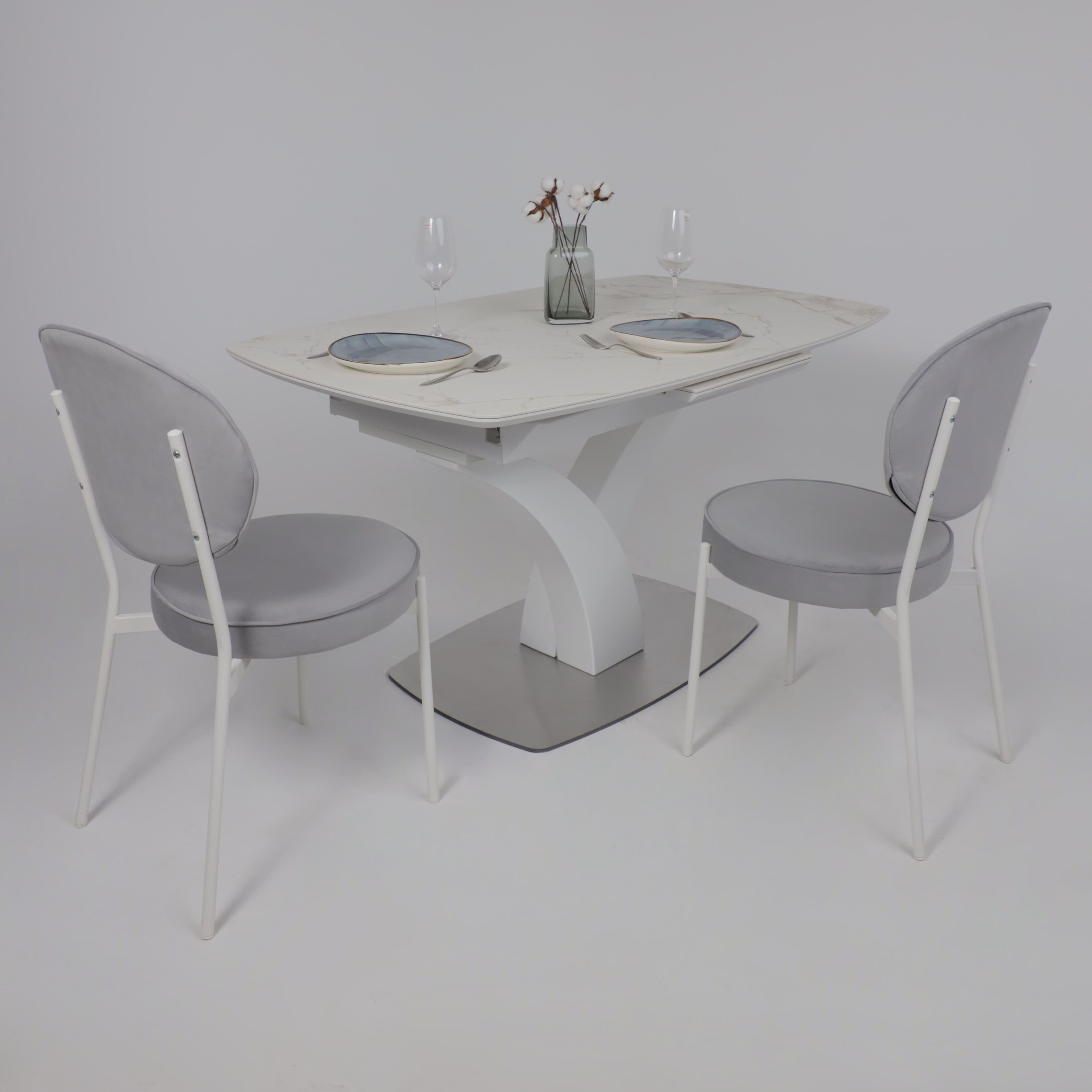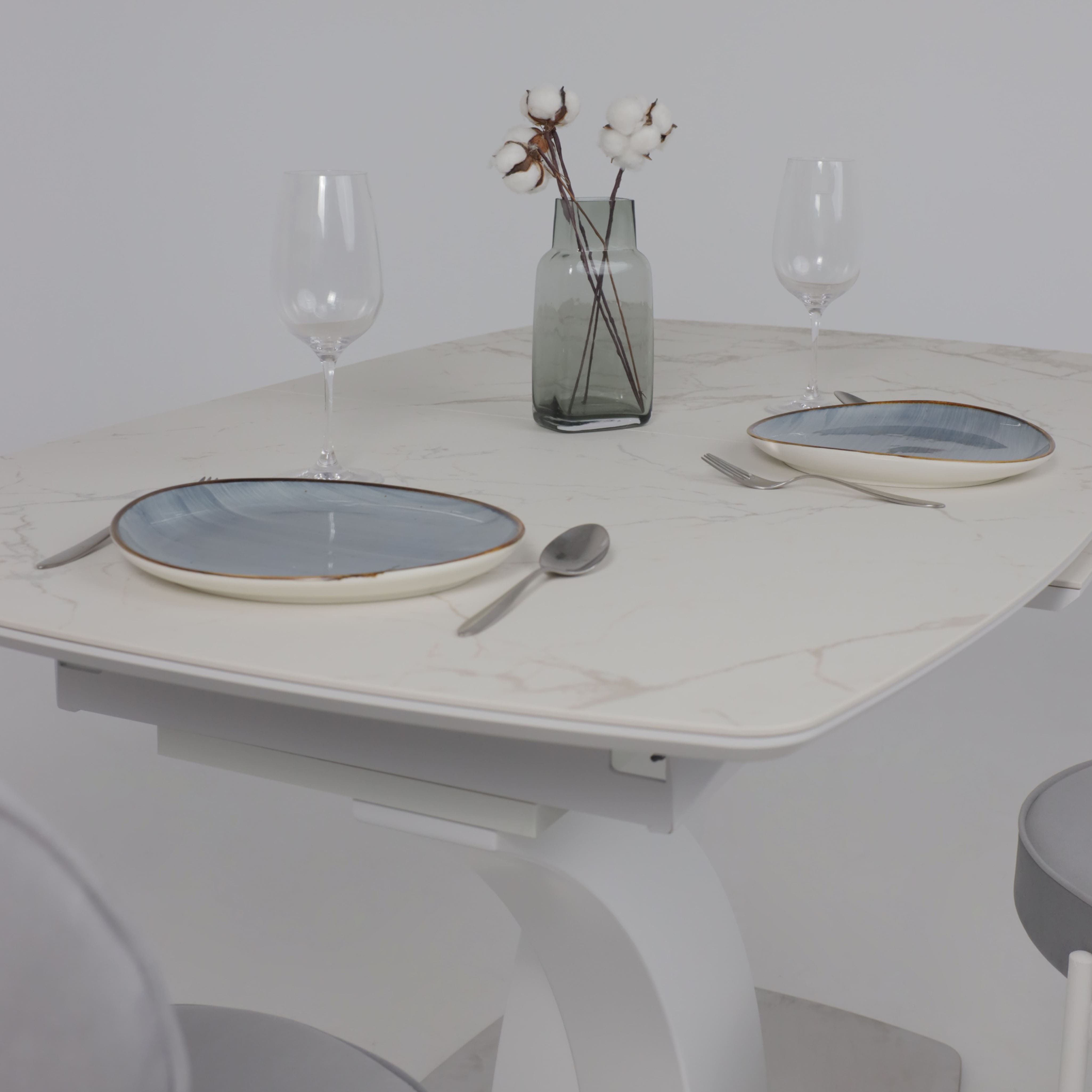 Стол НОТР ДАМ MODERNE 1400(1800)*850 камень белый Calacata vagli/белый муар купить в Минске