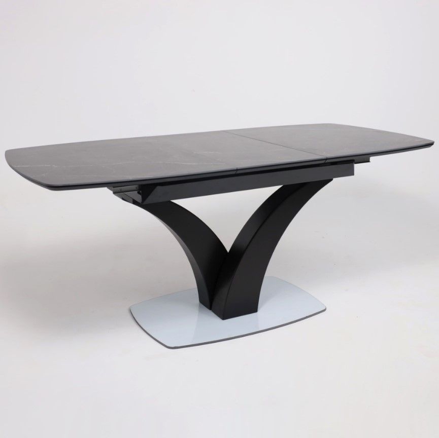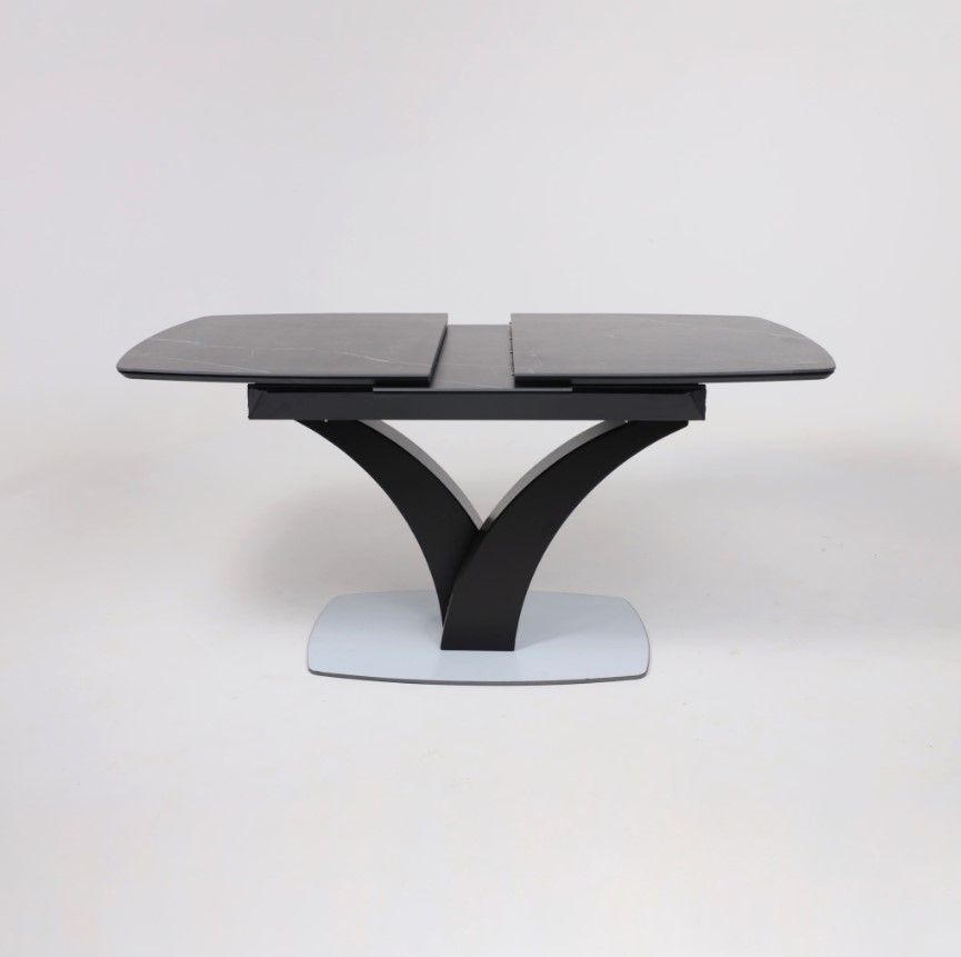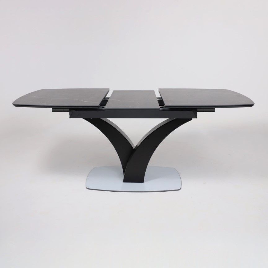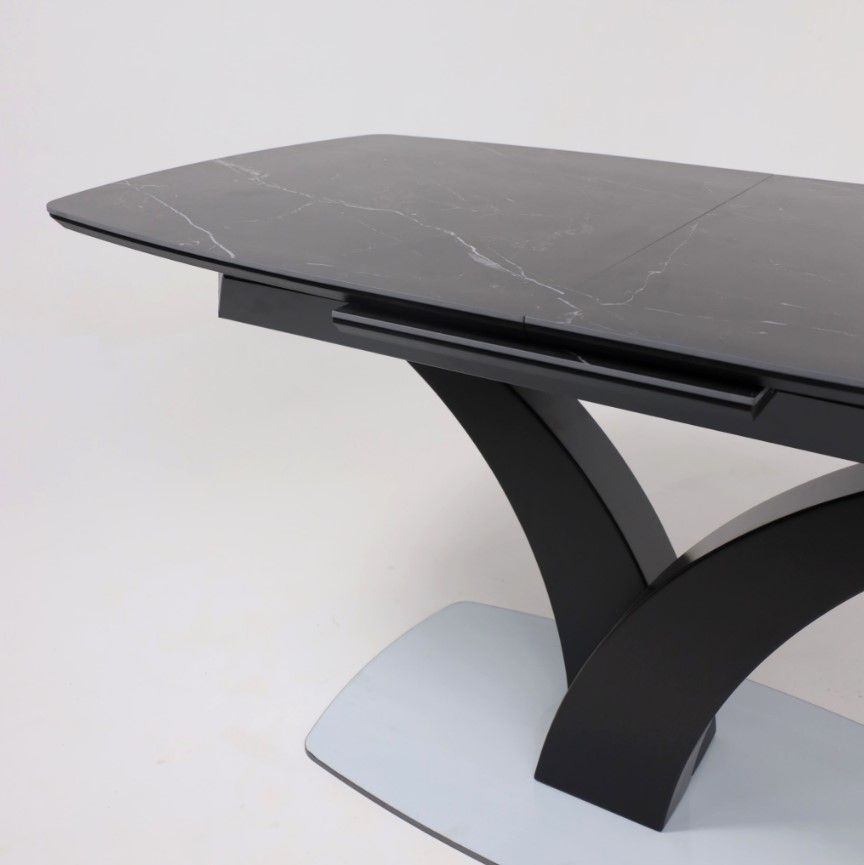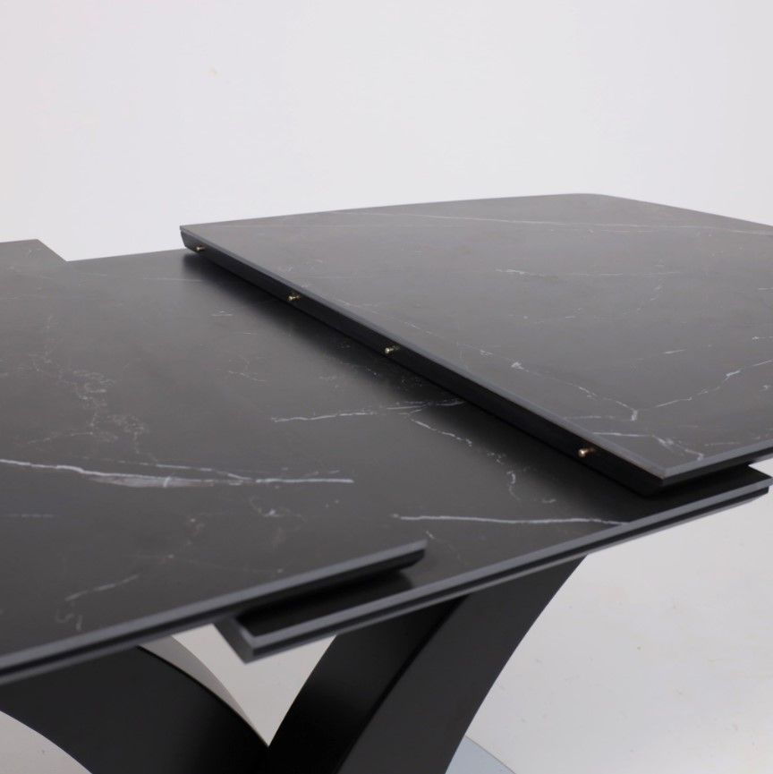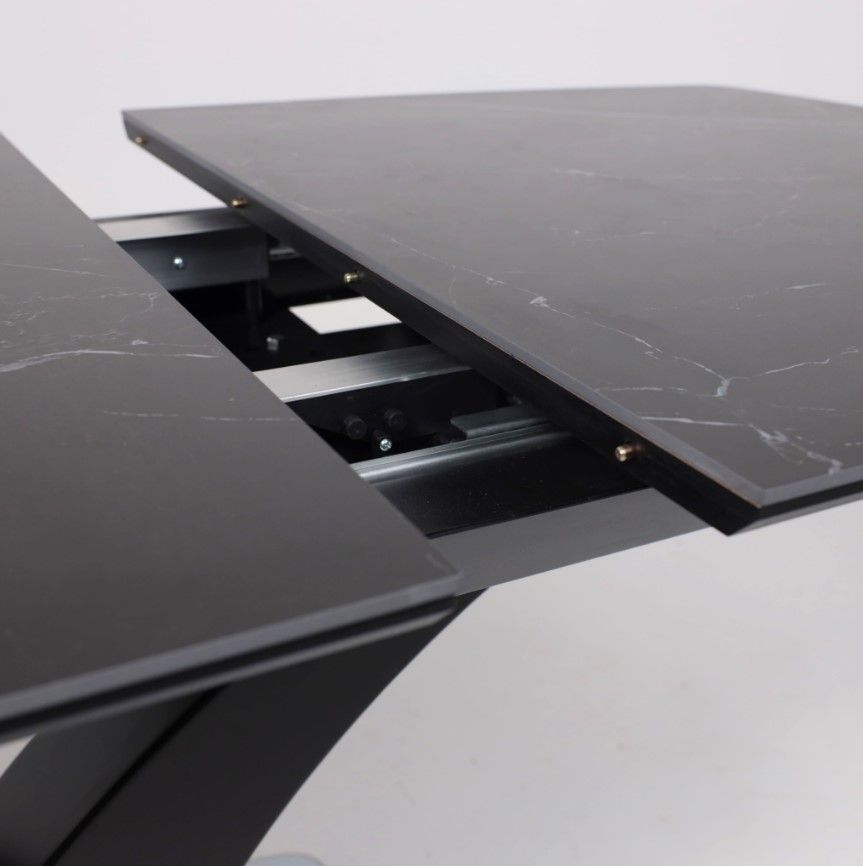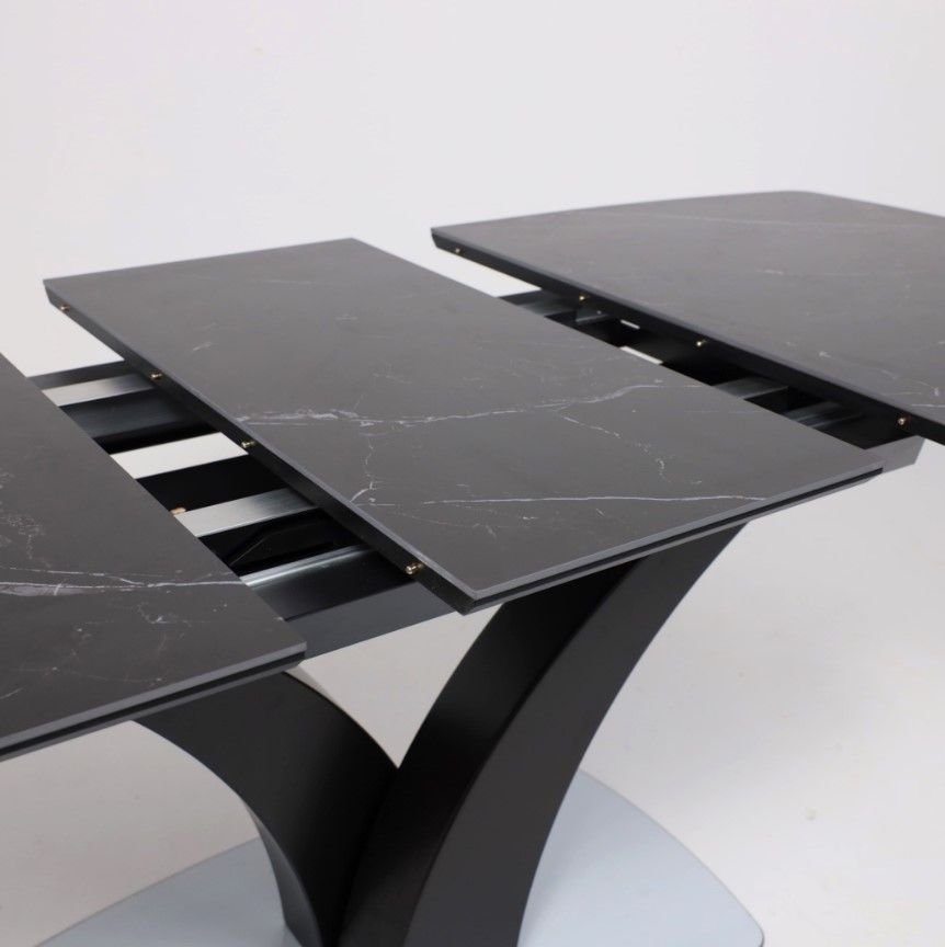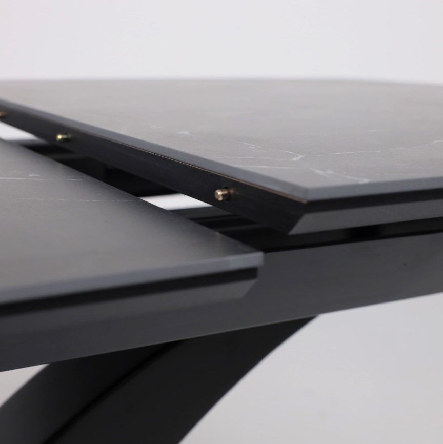 Столешница выполнена из высококачественной керамики, обладающей повышенной прочностью и устойчивостью к царапинам, сколам и воздействию влаги. Основание стола изготовлено из металла, что обеспечивает надежность и долговечность конструкции.