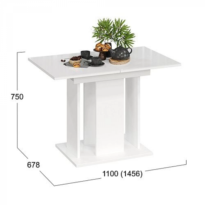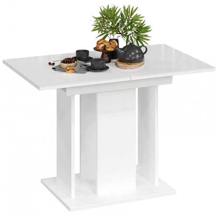Стол обеденный КЁЛЬН Тип 1, 1100(1456)*678, стекло белый глянец/белый купить в Минске
