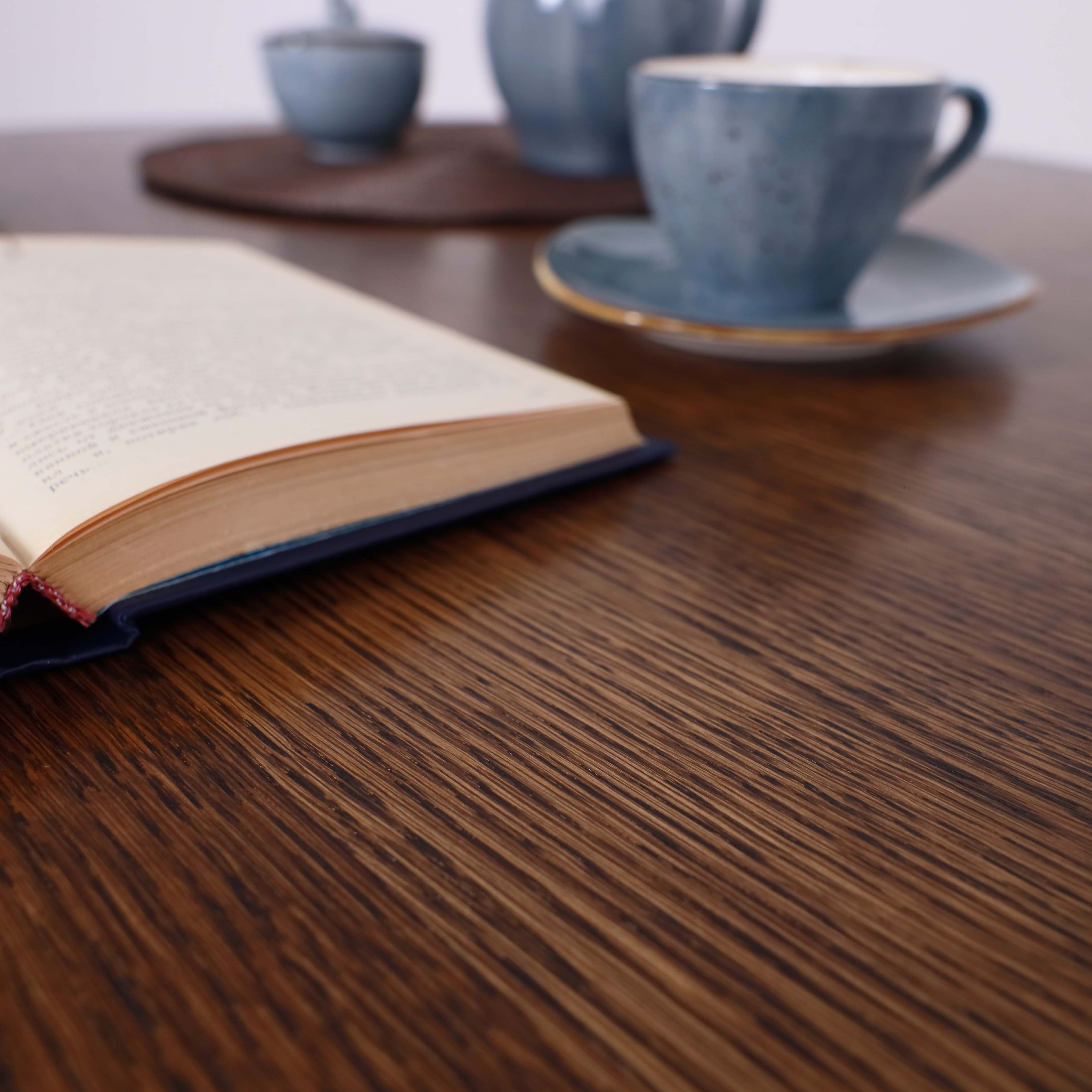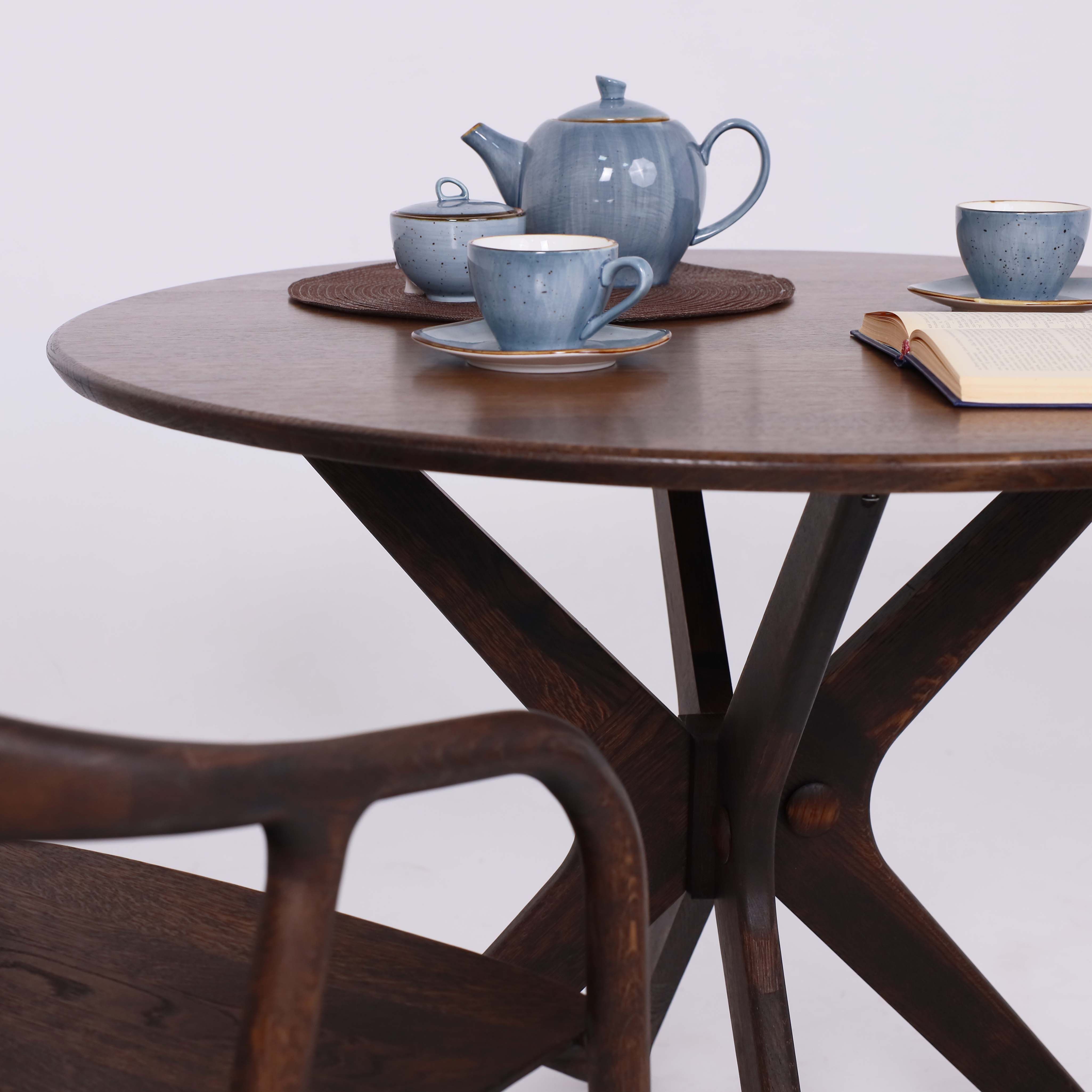 Форма столешницы круглая, что способствует равномерному распределению веса и обеспечивает комфорт при размещении посуды и столовых приборов. Диаметр столешницы составляет 95 см, что достаточно для комфортного размещения четырех человек и сервировки обеда.