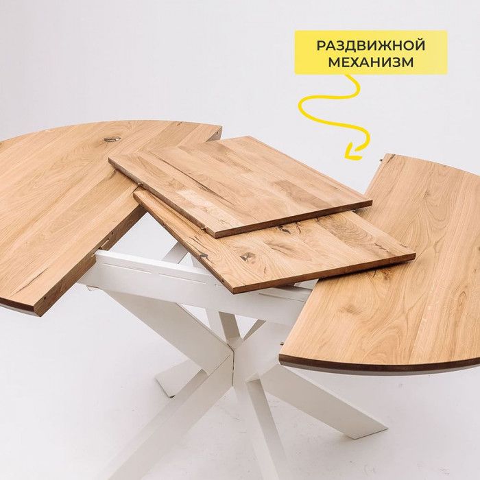 - Стол РАУНД раздвижной, d100(140)*75 дуб натуральный/белый купить в Минске