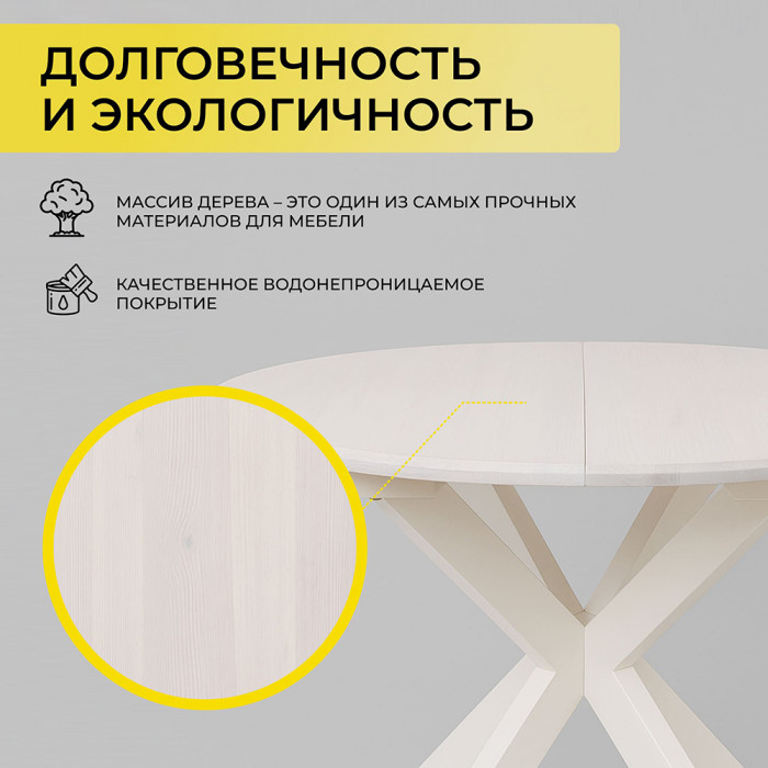 - Стол РАУНД раздвижной, d100(140)*75 дуб вайт/белый купить в Минске