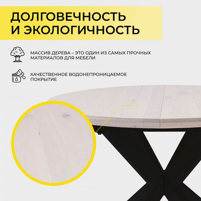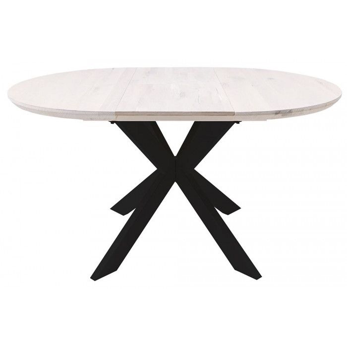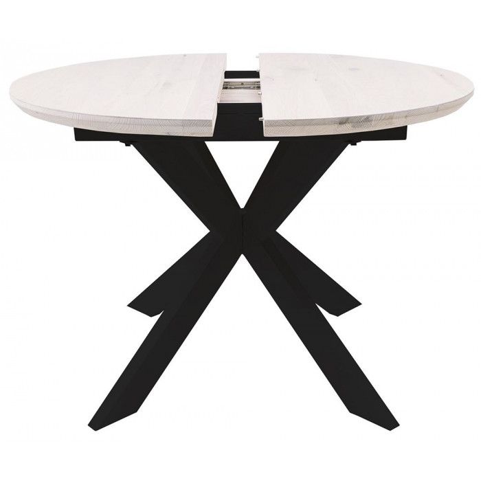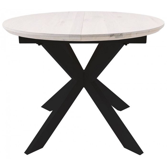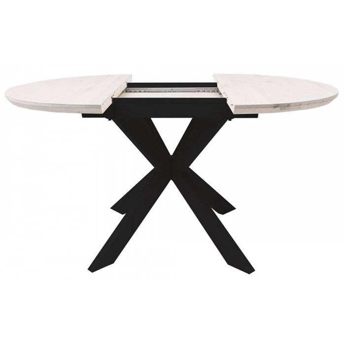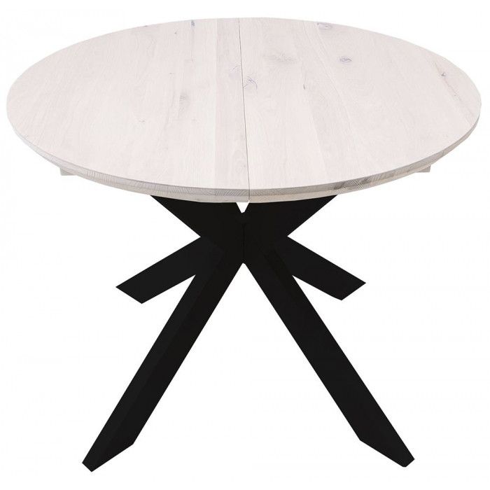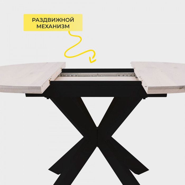 - Стол РАУНД раздвижной, d100(140)*75 дуб беленый/черный купить в Минске