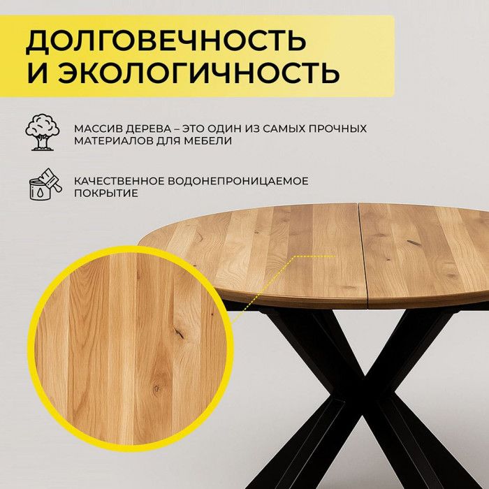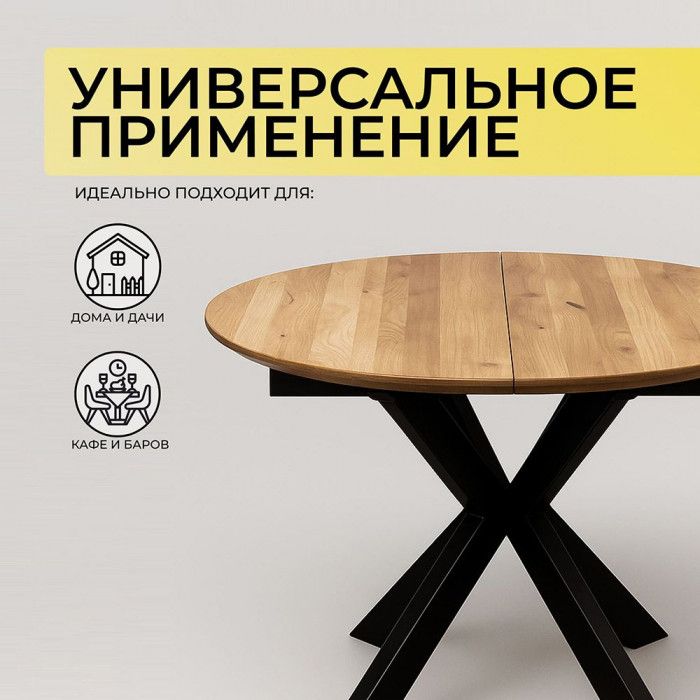 - Стол РАУНД раздвижной, d100(140)*75 обеденный дуб натуральный/черный купить в Минске