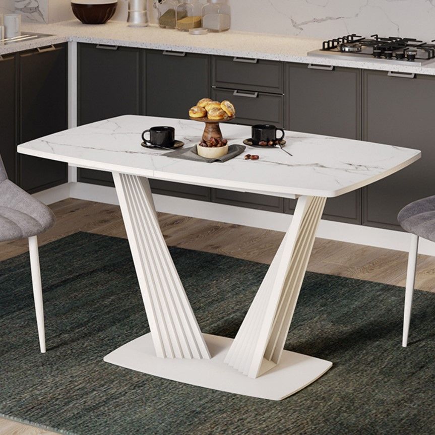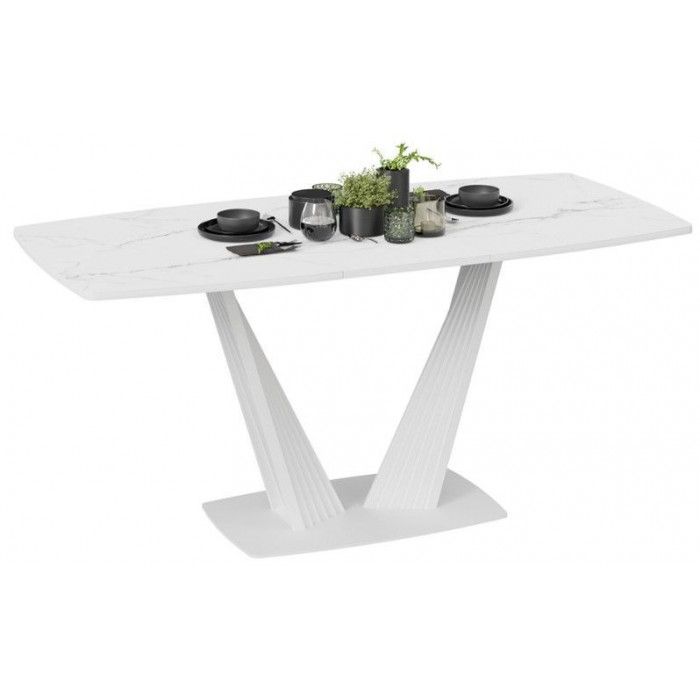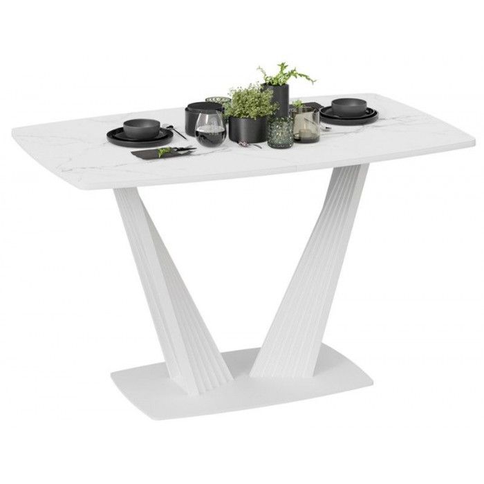 - Стол раздвижной ФАБИО Тип 1 1300(1700)*800 стекло матовое белый мрамор/белый матовый купить в Минске