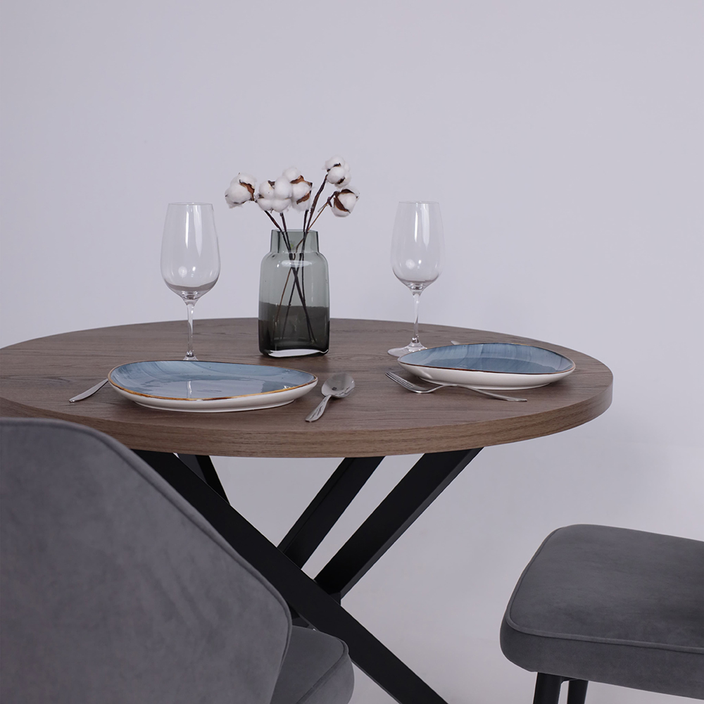 Стол РИГА D950 дуб гудзон шоколадный/черный