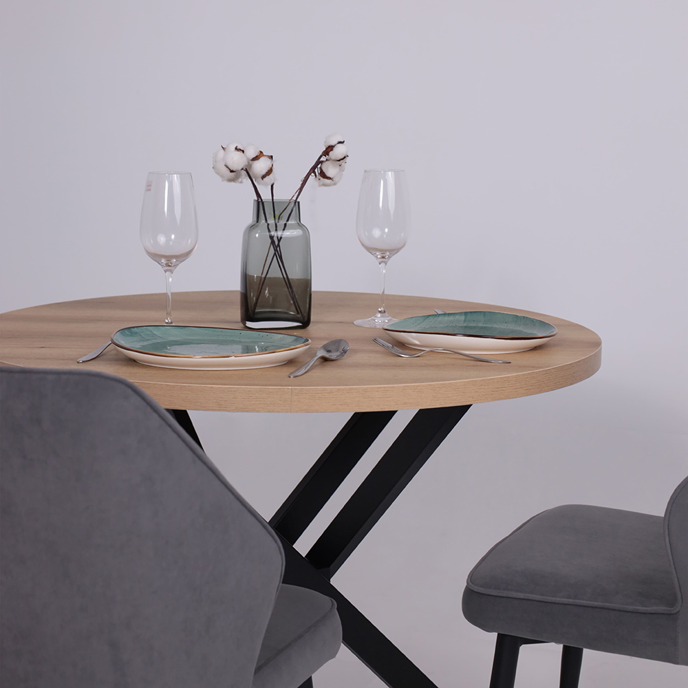 - Стол РИГА D950 дуб сильверджек ореховый/черный