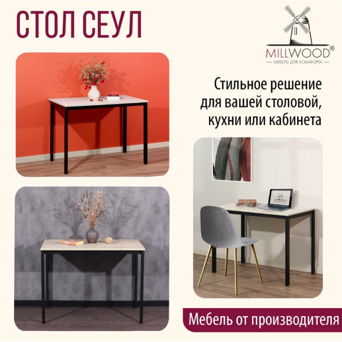 Стол Сеул – классическое и элегантное решение для вашей кухни, офиса или кабинета. Этот стол сочетает в себе простоту дизайна, функциональность и надежность, предоставляя вам комфортное рабочее или обеденное пространство.