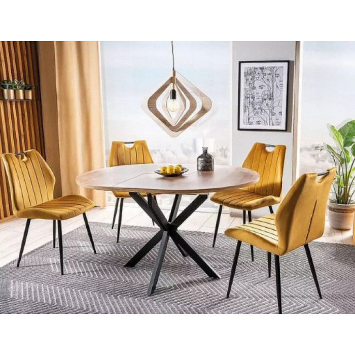 Раздвижной обеденный стол GASTON с круглой столешницей из МДФ (100 см) раскладывается до овала 135х100 см, вмещая до 6 человек. Чёрное металлическое основание и лаконичный дизайн делают его идеальным для стилей лофт и минимализм.