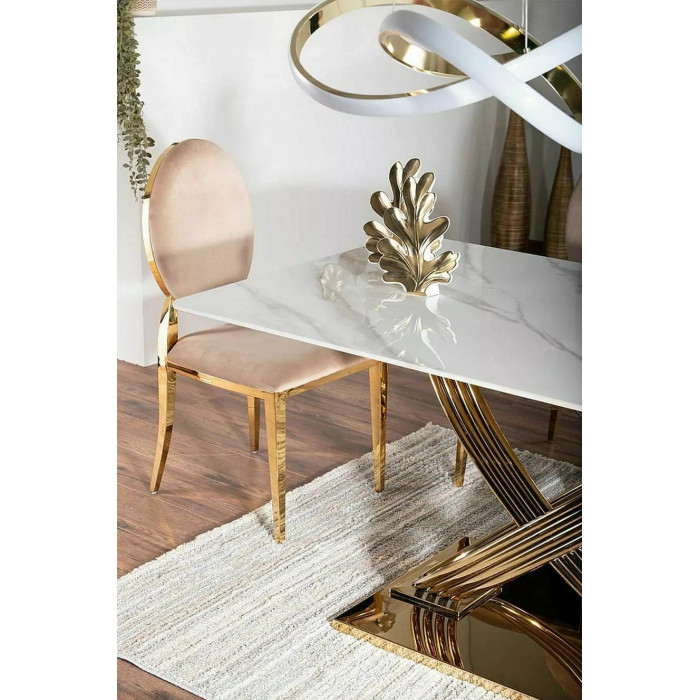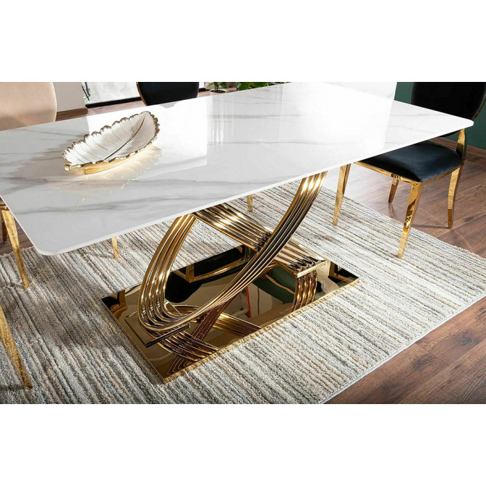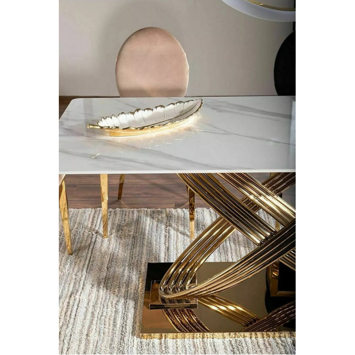 Стол обеденный Signal HERMES (Гермес) 160*90 эффект белого мрамора/золотой купить в Минске