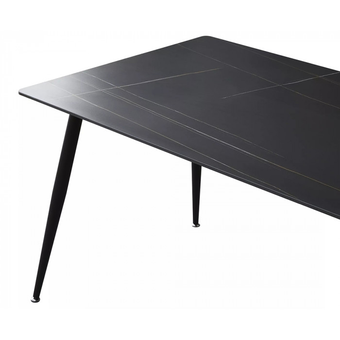 Прямоугольная столешница из керамики размером 130x70 см сочетает ультрасовременный глянцевый блеск с феноменальной практичностью, устойчивая к царапинам, высоким температурам и влаге. Прочный металлический каркас придает конструкции легкость и устойчивость, подчеркивая лаконичность и строгость линий. Стол комфортно вмещает до шести человек, создавая идеальное пространство для семейных обедов и дружеских встреч.