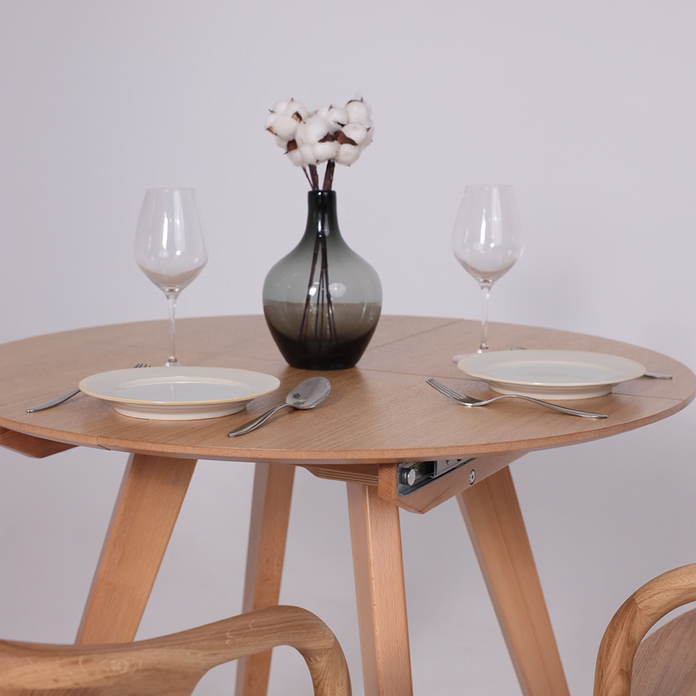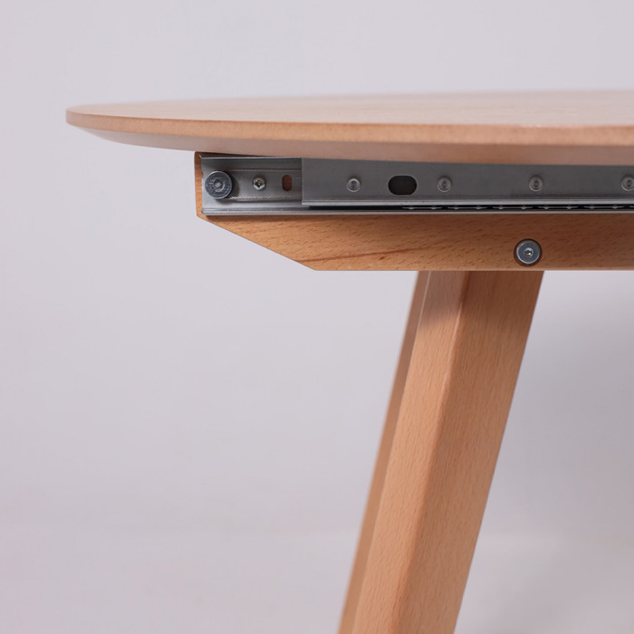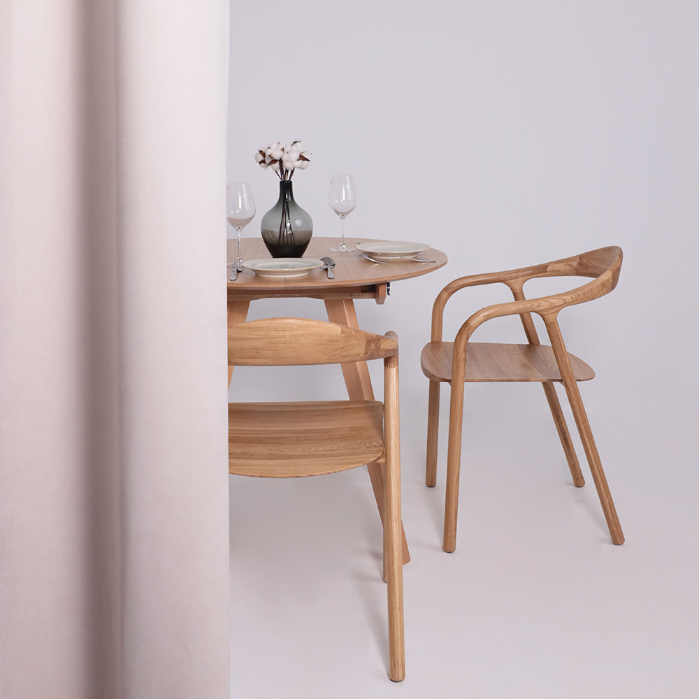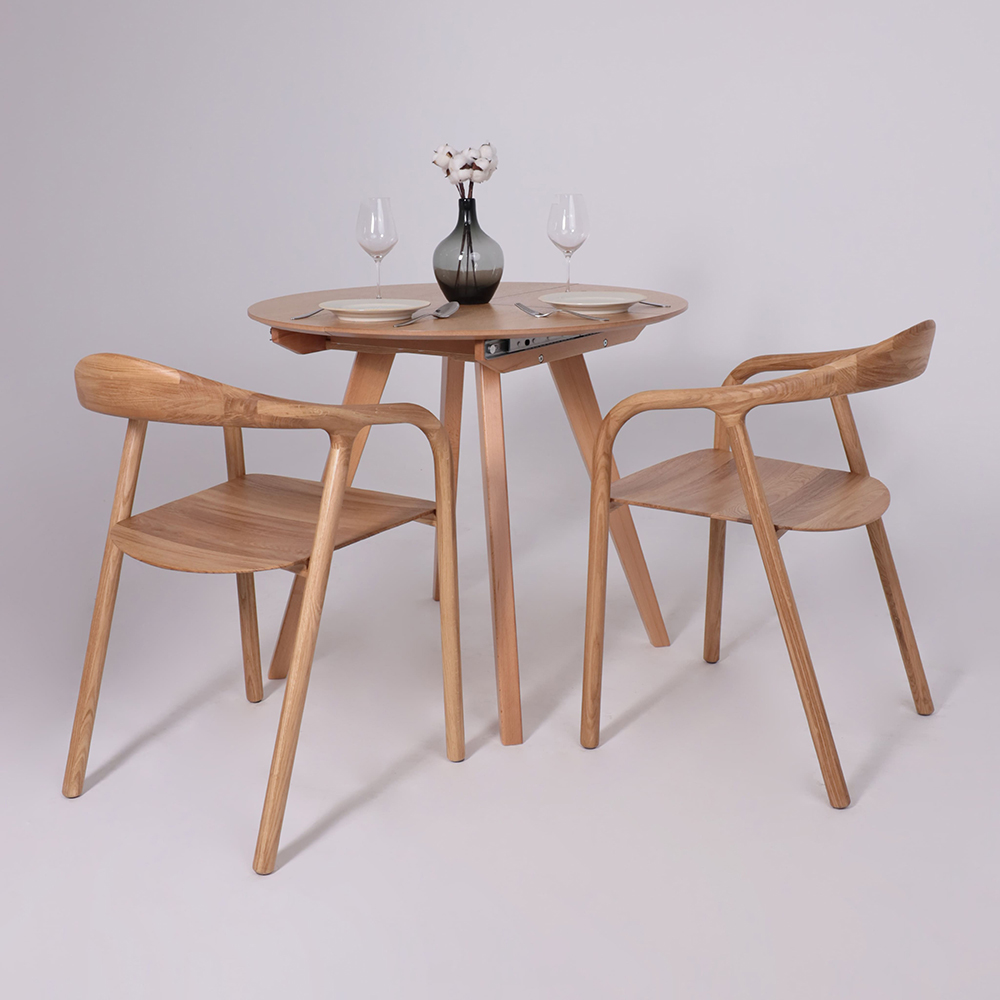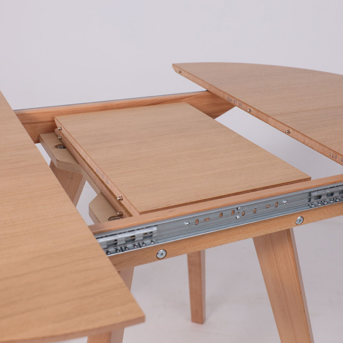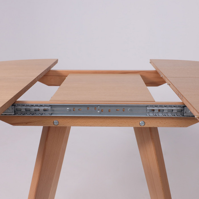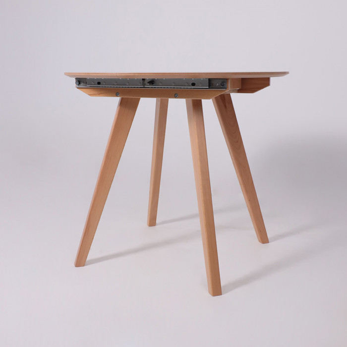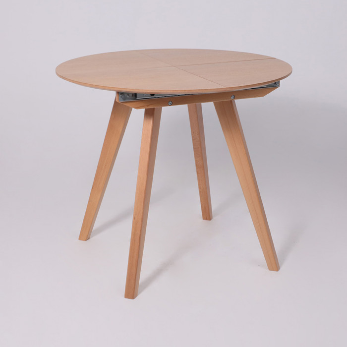 Круглый раздвижной стол Тамус из массива бука светлого тона (87*87 см, в разложенном виде - 116*87 см) вмещает до 6 человек. Синхронный механизм и раздвижная конструкция делают его идеальным для небольших помещений.