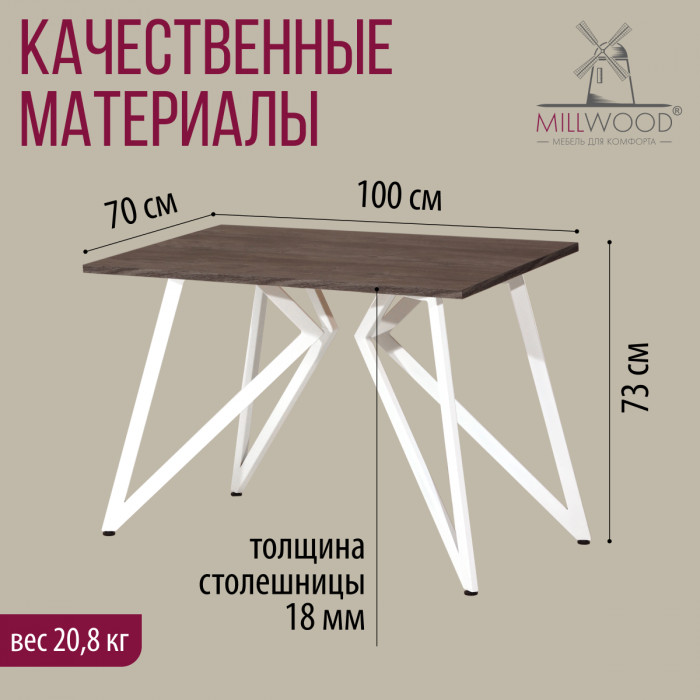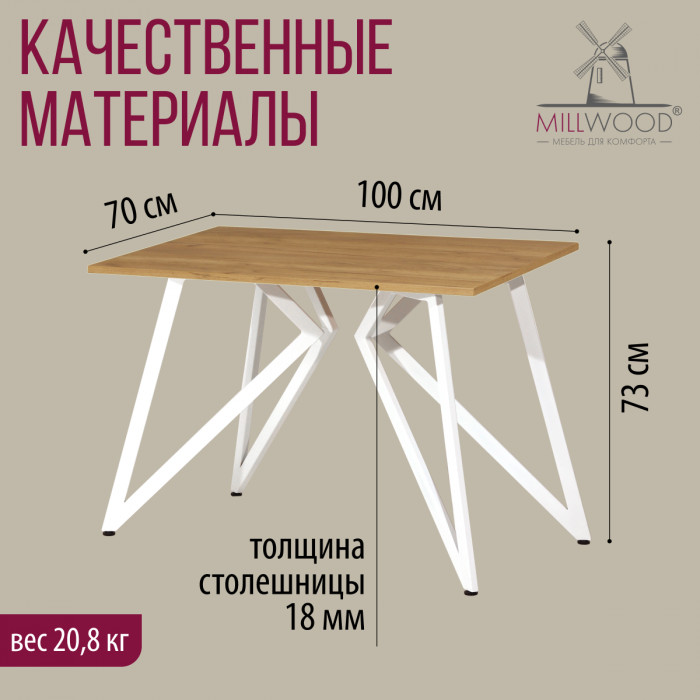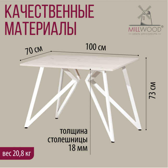 Стол Женева 100*70 18 мм (каркас белый) купить в Минске