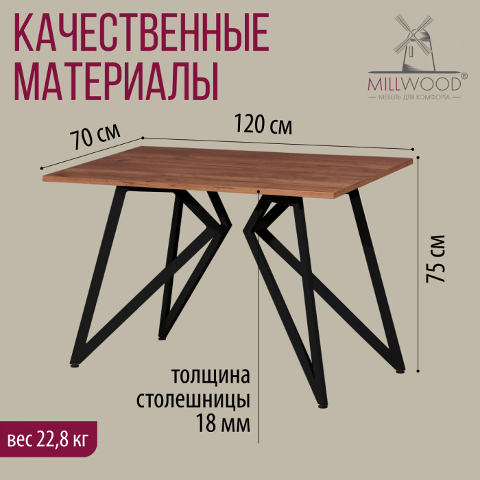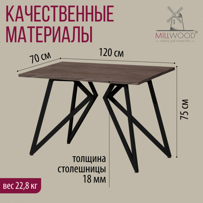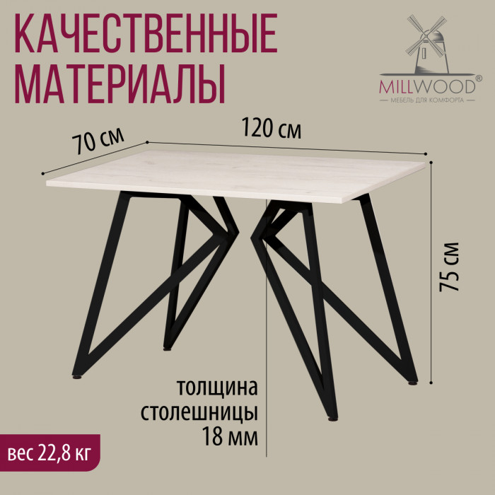 Стол Женева 120*70 18 мм (каркас черный) купить в Минске
