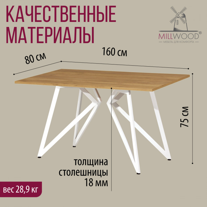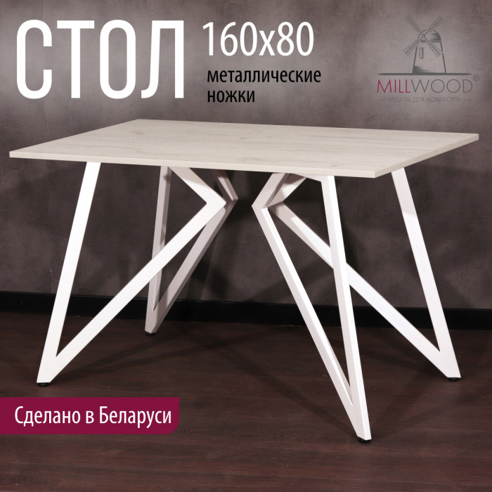 Стол Женева 160*80 18 мм (каркас белый) купить в Минске