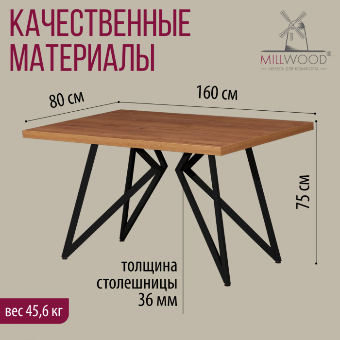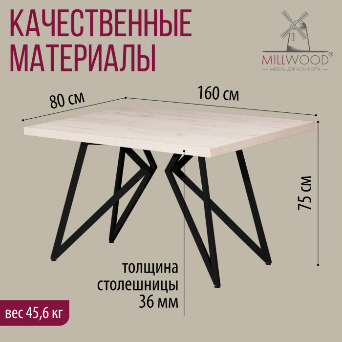 Стол Женева 160*80 36 мм (каркас черный) купить в Минске