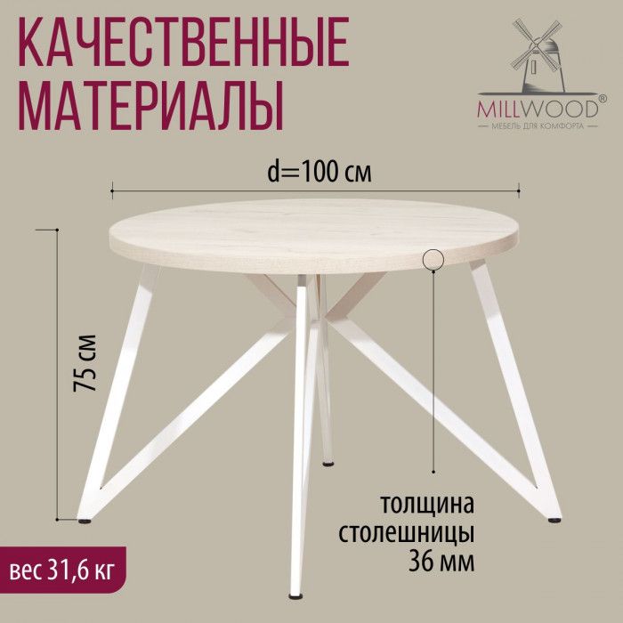 Стол Женева d100 36 мм (каркас белый) купить в Минске
