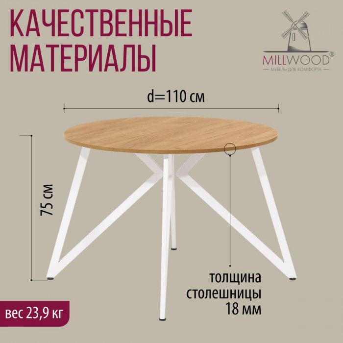 Стол Женева d110 18 мм (каркас белый) купить в Минске