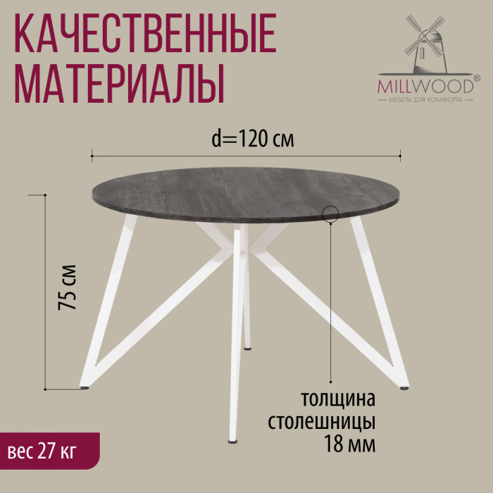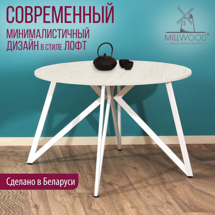 Стол Женева d120 18 мм (каркас белый) купить в Минске