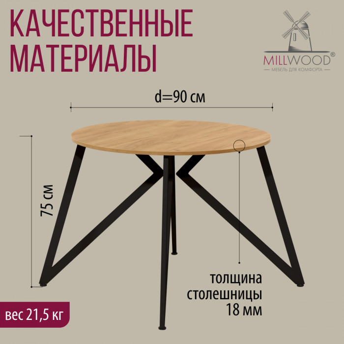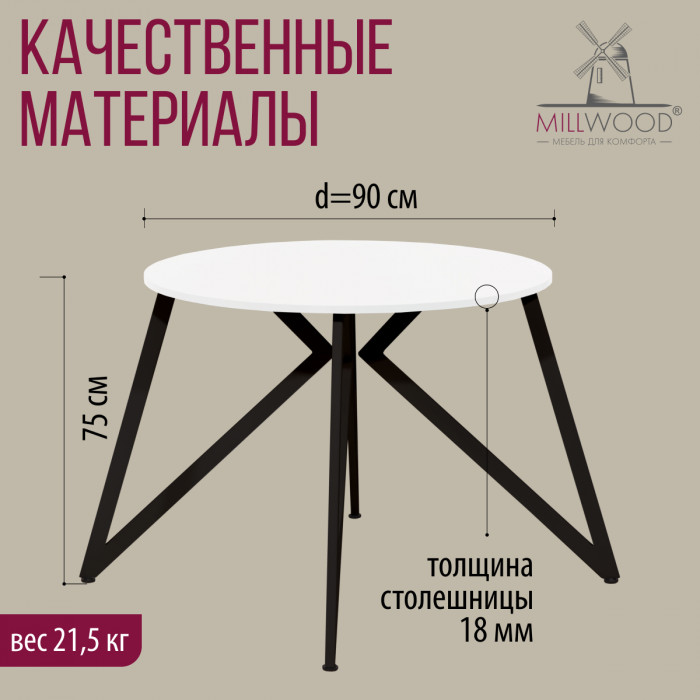 Стол Женева d90 18 мм (каркас черный) купить в Минске