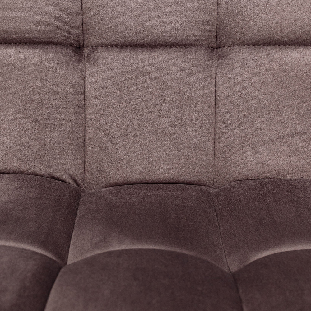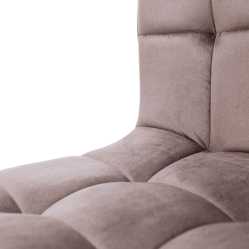 Декоративная стежка с рисунком в виде квадратов подчеркивает уют и оригинальность стула, придает изделию фактурность и стильный облик. Подъемный механизм позволяет настраивать высоту сиденья под пользователя. Прочное металлическое основание имеет хромированное покрытие, отличается надежностью и долговечностью, не боится механических повреждений, оснащено удобной подножкой.