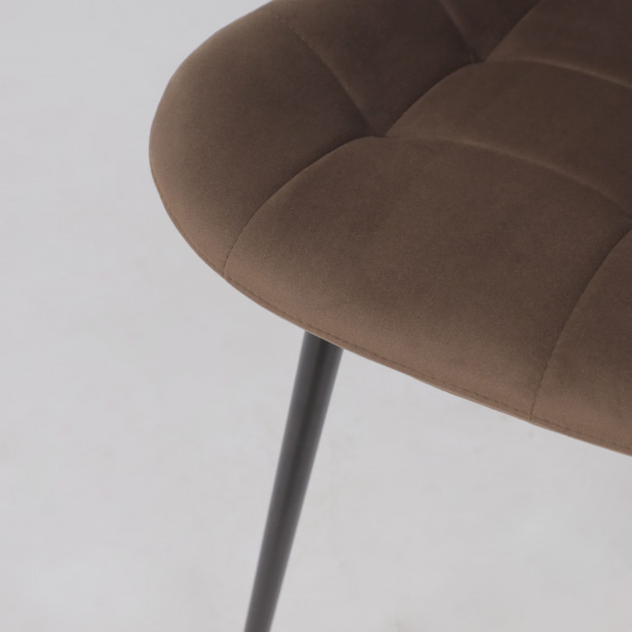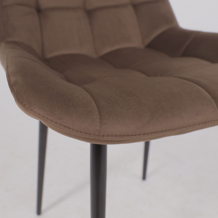 Кухонный стул в мягкой обивке из велюра без подлокотников. Анатомическая форма сиденья обеспечивает удобство, а декоративная стяжка придает объём и защищает от образования вмятин.