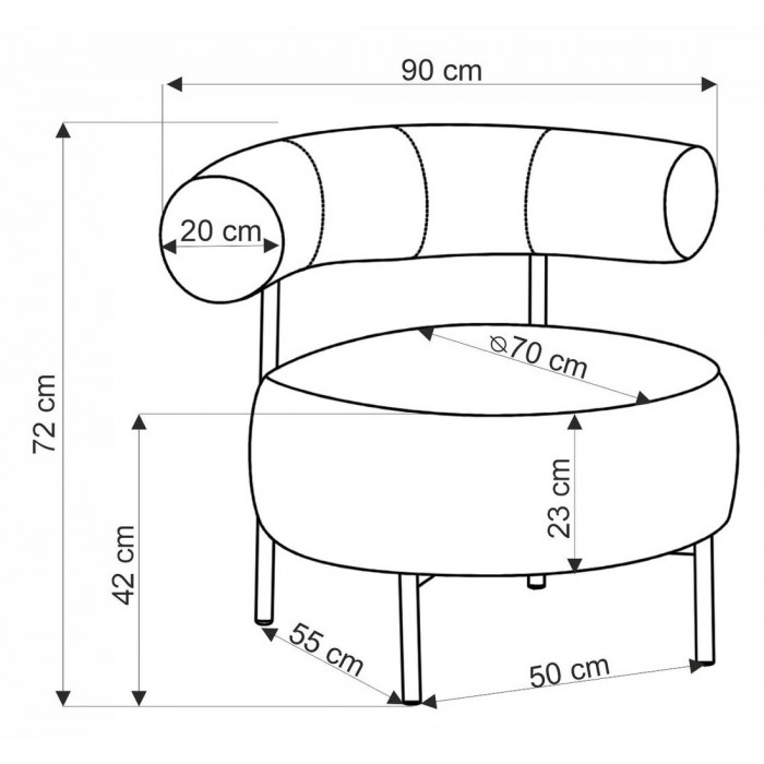 Основание кресла выполнено из металла, что обеспечивает прочность и надежность конструкции. Без подлокотников, это кресло идеально подходит для отдыха в гостиной или спальне, где его минималистичный дизайн будет гармонировать с любым интерьером.