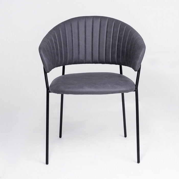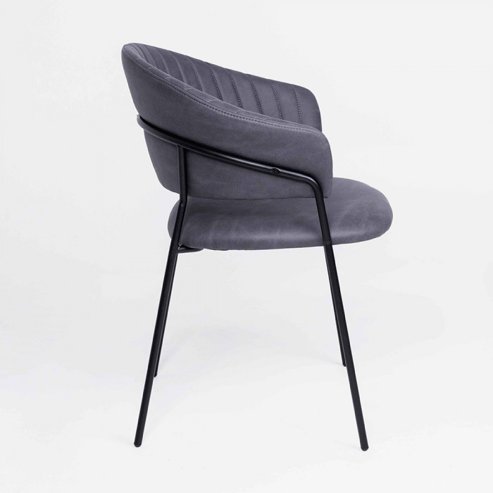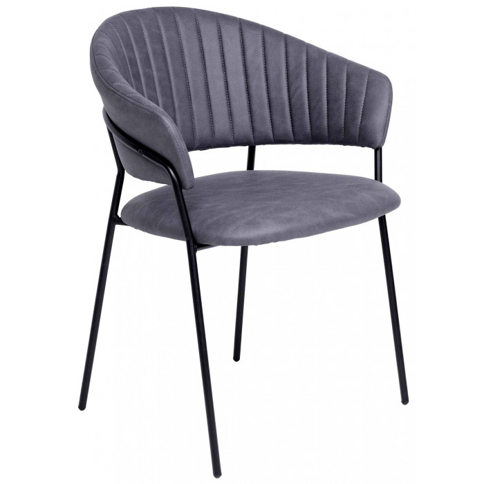 Роскошная замшевая обивка придает интерьеру благородный шик, а плавные линии спинки, перетекающей в изящные подлокотники, создают гармоничный силуэт. Прочное металлическое основание обеспечивает устойчивость и долговечность, делая этот стул не только стильным, но и практичным выбором для ежедневного использования.