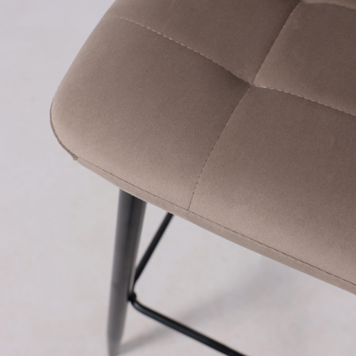 Стул барный AKSHOME Stella подчеркнет индивидуальность интерьера кухни, гостиной, бара или кафе. Мягкие сиденье и спинка обеспечивают удобную посадку. Обивка выполнена из велюровой ткани, которая придает мебели респектабельный, благородный и нарядный вид, приятна на ощупь и проста в уходе. Декоративная строчка с рисунком в виде квадратов подчеркивает уют и оригинальность стула, придает изделию фактурность и стильный облик. Элегантные тонкие металлические ножки соединены с четырех сторон перегородками, одна из которых выполняет роль подножки. Стул прекрасно впишется в любой интерьер – и классический, и винтажный, и ультрасовременный.