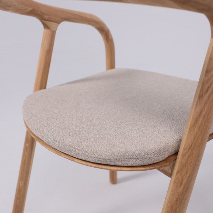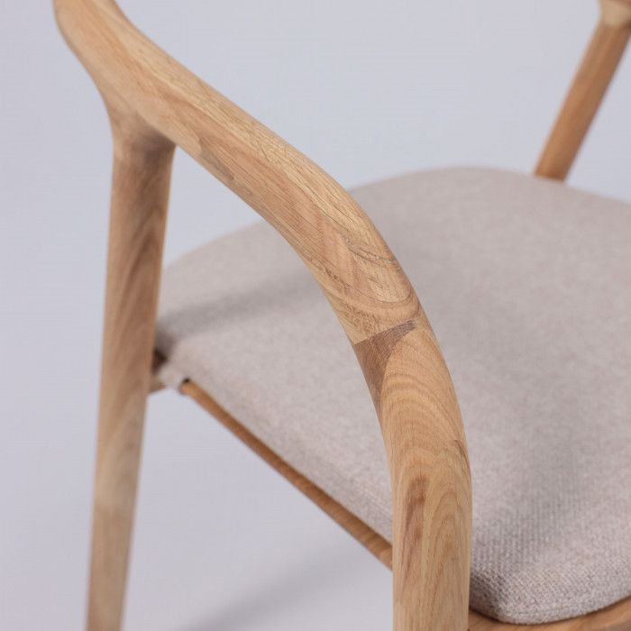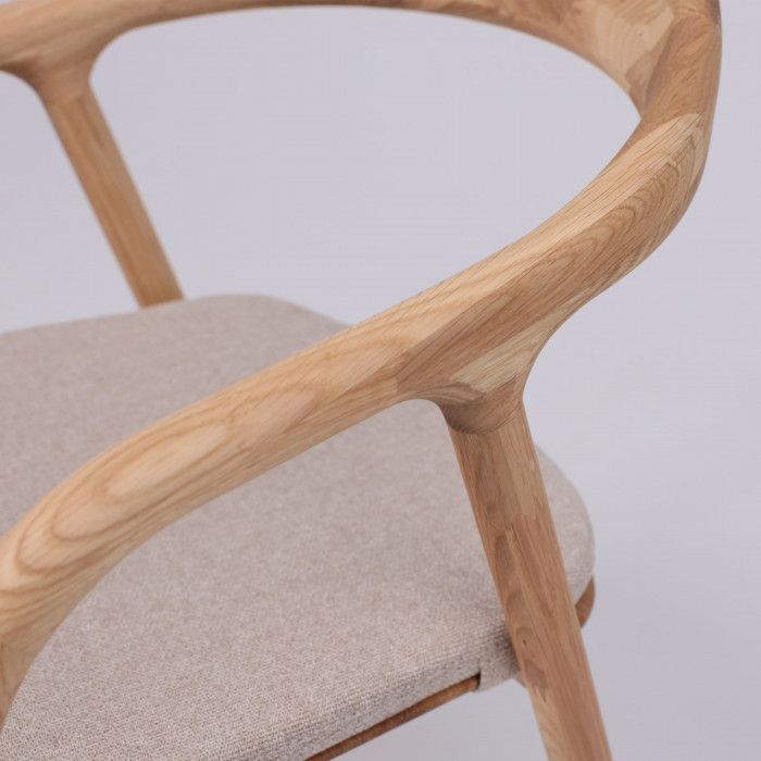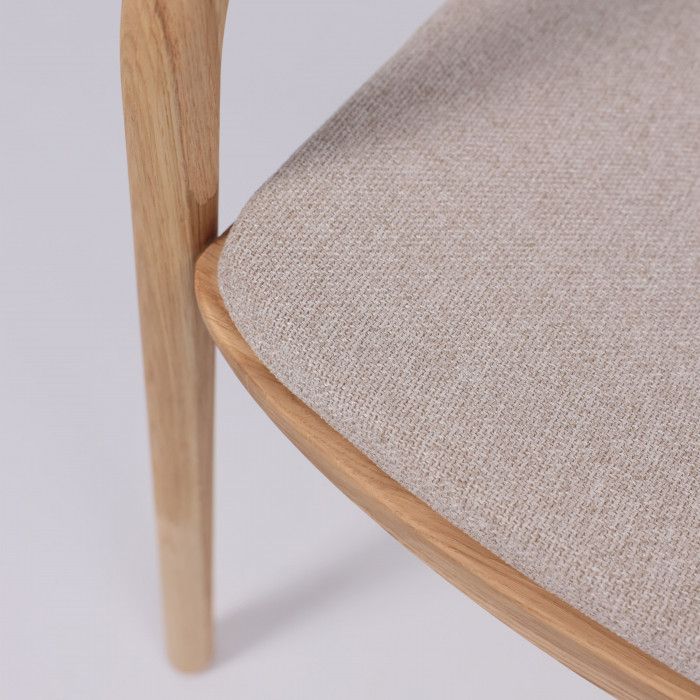 Его основание выполнено из натурального дуба, что придает ему прочность и долговечность. Мягкое бежевое сиденье обеспечивает комфорт во время трапезы или длительного времяпрепровождения за столом. Сочетание натурального дерева и приятного на ощупь текстиля создает гармоничный и современный образ, который впишется в любой интерьер кухни или столовой. Стул отличается высоким качеством исполнения и станет прекрасным дополнением к вашей мебельной композиции.