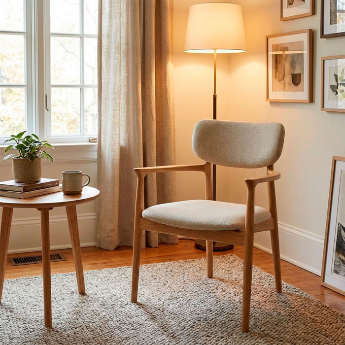 Стул Илона Лайт — это элегантное и надёжное решение для гостиной, кухни, бара или ресторана, выполненное из благородного массива дуба. Натуральное дерево основания и подлокотников придаёт модели основательность и теплоту, а мягкая обивка из износостойкого шенилла обеспечивает комфорт во время отдыха или приёма пищи. Удобные нерегулируемые подлокотники позволяют расслабиться, сохраняя при этом лаконичность силуэта. Сдержанный дизайн стула легко впишется как в классический, так и в современный интерьер.