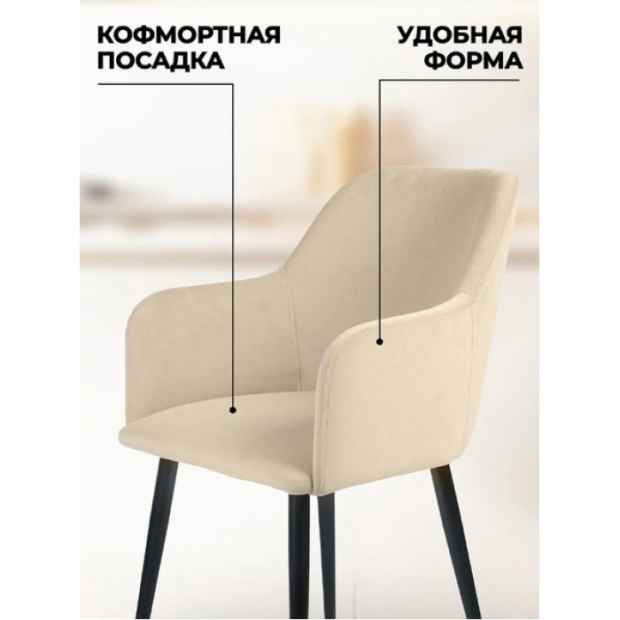 Металлические ножки обеспечивают устойчивость и долговечность, а мягкая велюровая обивка создает комфорт и уют. Нерегулируемые подлокотники добавляют дополнительную поддержку для рук. Этот стул не только удобен, но и обладает приятным, классическим дизайном, который будет гармонично смотреться в любом интерьере. Благодаря легкому уходу за велюровой тканью, стул Эмеральд станет практичным и долговечным дополнением к вашей кухне или столовой.